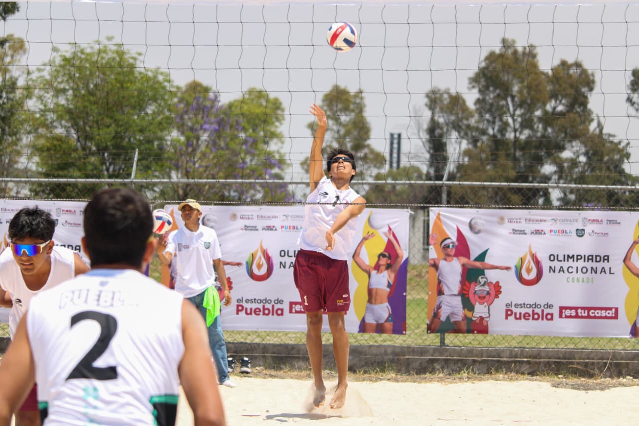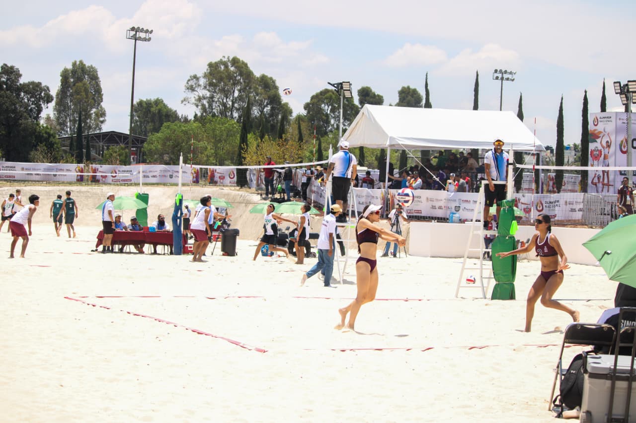 CIUDAD DE PUEBLA, Pue.– La actividad deportiva de la Olimpiada Nacional CONADE 2026 se reanudó este día con la disciplina de voleibol de playa, la cual se disputa en las nuevas canchas ubicadas en el Centro Estatal de Tenis, construidas con arena proveniente del Mundial de Voleibol de Playa Sub-21.