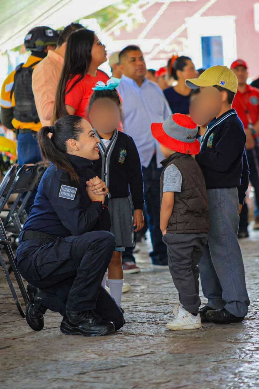 Como parte de la actividad, vecinas y vecinos recibieron alarmas personales con el propósito de fortalecer su participación en la prevención del delito y la violencia. Asimismo, se presentó a la “Patrullita Naranja”, iniciativa integrada por hijas e hijos de elementos policiales, que busca promover la cultura de la legalidad y reconocer el trabajo de las fuerzas de seguridad.