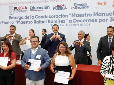 Comunicado AA 277/2025 -El Gobernador Alejandro Armenta encabezó la entrega de la Condecoración "Maestro Manuel Altamirano” por 30 años de servi ...