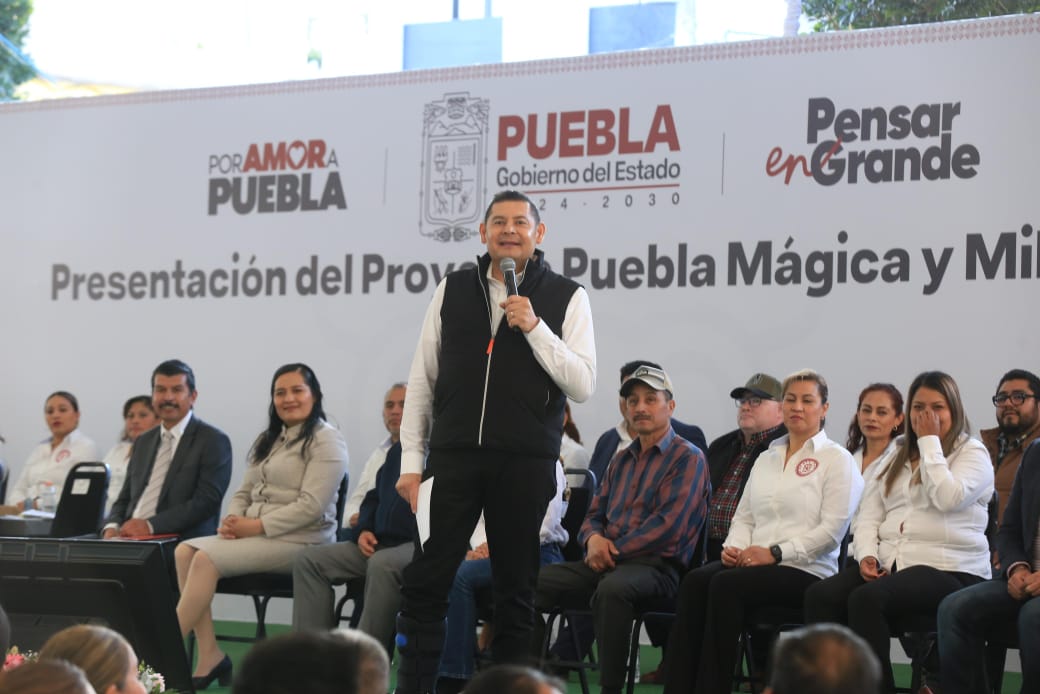 ACATZINGO, Pue.- "Vamos a trabajar en los 217 municipios de Puebla para promover arte, cultura, deporte y turismo comunitario, porque todos tienen cosas maravillosas: infraestructura, arte, cultura, gastronomía. Y tenemos que aprovechar ese turismo, esa arquitectura maravillosa. Tenemos que transformar a nuestros municipios en una categoría de pueblos mágicos y milenarios”, afirmó el gobernador del estado, Alejandro Armenta, y adelantó que este año se creará la categoría de "Pueblo mágico y milenario" donde, de acuerdo con su origen prehispánico y ancestral, estarán integrados los municipios de Acatzingo, Tepeaca e Izúcar de Matamoros.