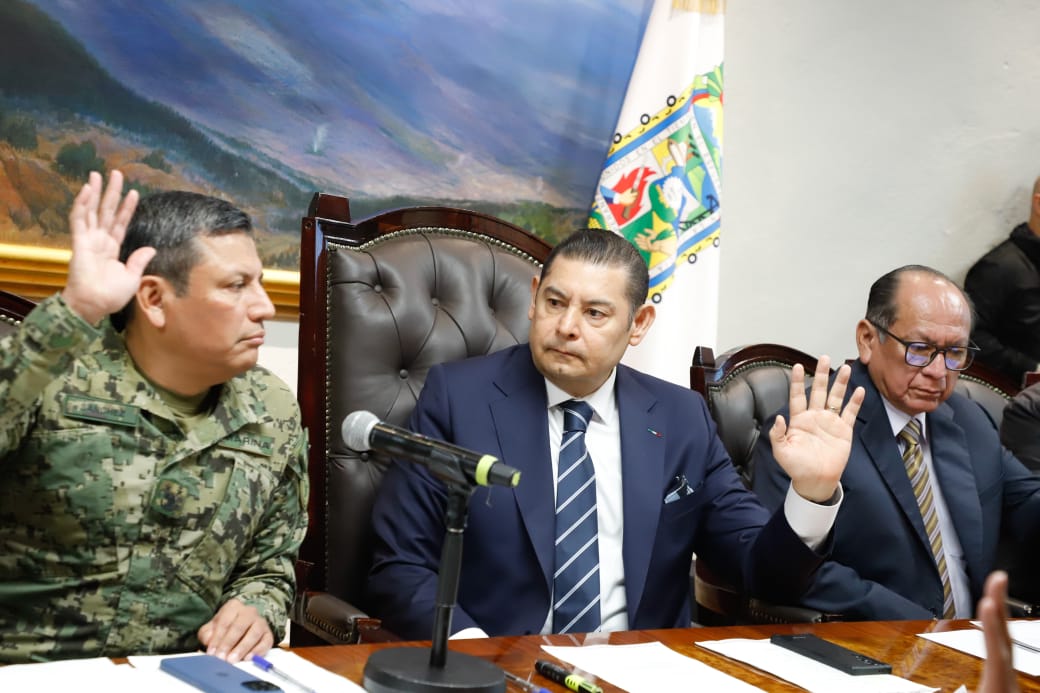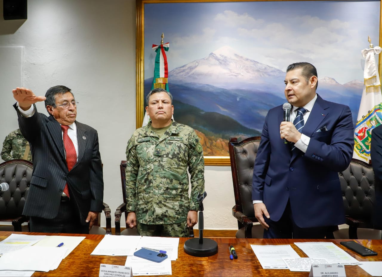PUEBLA, Pue.- En el marco de la Cuarta Sesión Extraordinaria 2024 del Consejo Estatal de Coordinación del Sistema Nacional de Seguridad Pública (CECSNSP), el gobernador del Estado Alejandro Armenta, tomó protesta a Humberto Eloy Aguilar Viveros, como secretario de dicho Consejo.