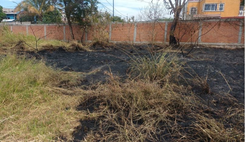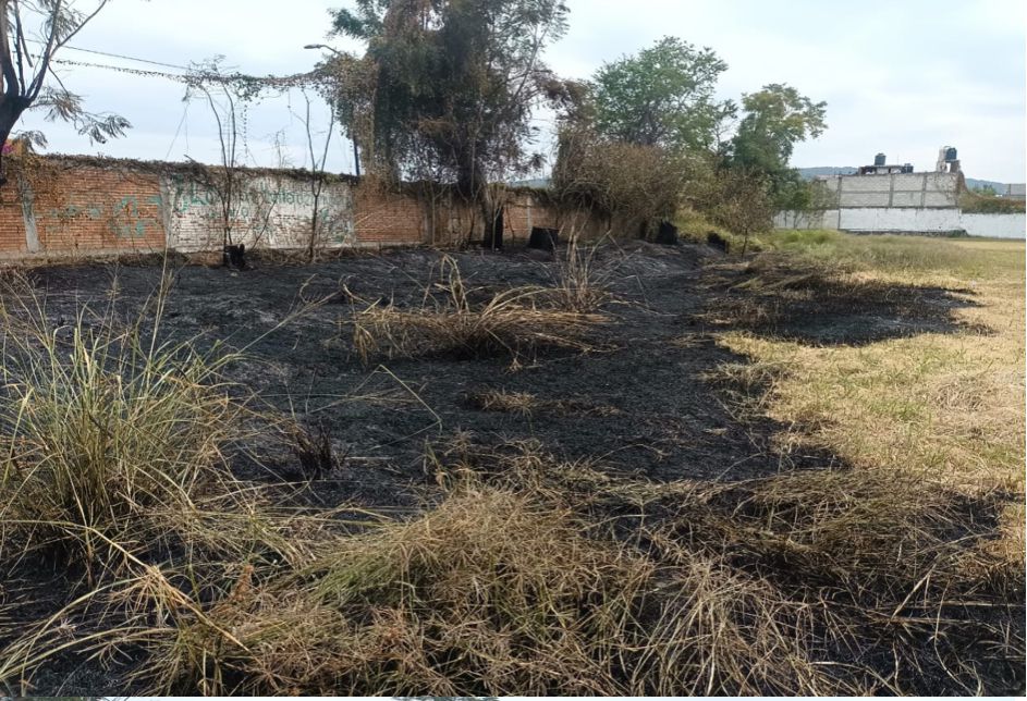 -Protección Civil y Bomberos controlan fuego en quema de pastizales en el Plantel 12 de Izúcar de Matamoros.