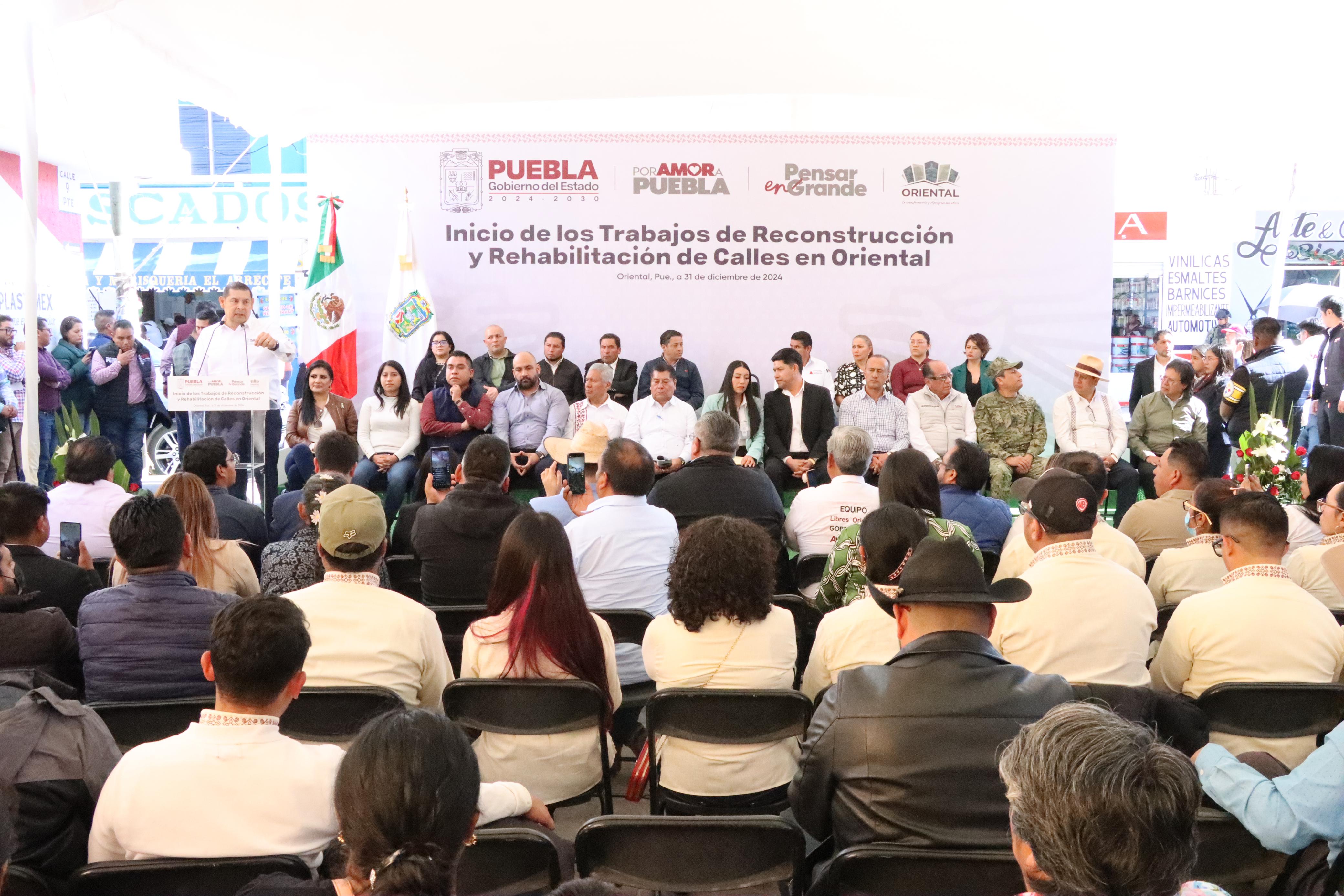 ORIENTAL, Pue.- “Vamos a invertir recursos importantes de ustedes para que el proyecto hídrico signifique seguridad del agua en sus familias, en el campo, en la industria, en el comercio, es una prioridad. Es tan importante el agua como la seguridad, son aspectos fundamentales para la vida, el agua y la seguridad, son pilares”, afirmó el gobernador Alejandro Armenta durante el “Inicio de los Trabajos de Reconstrucción y Rehabilitación de Calles en Oriental”.