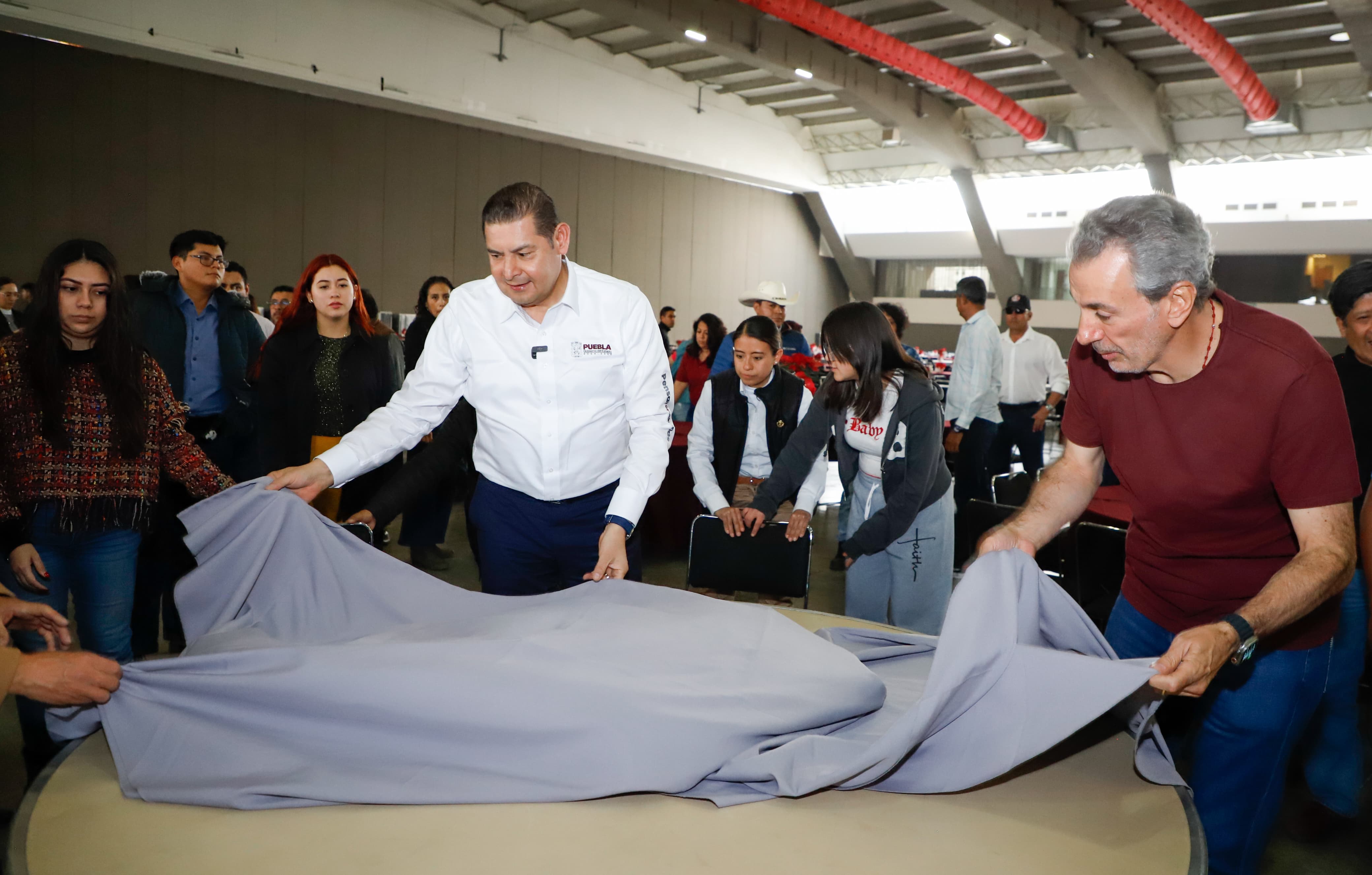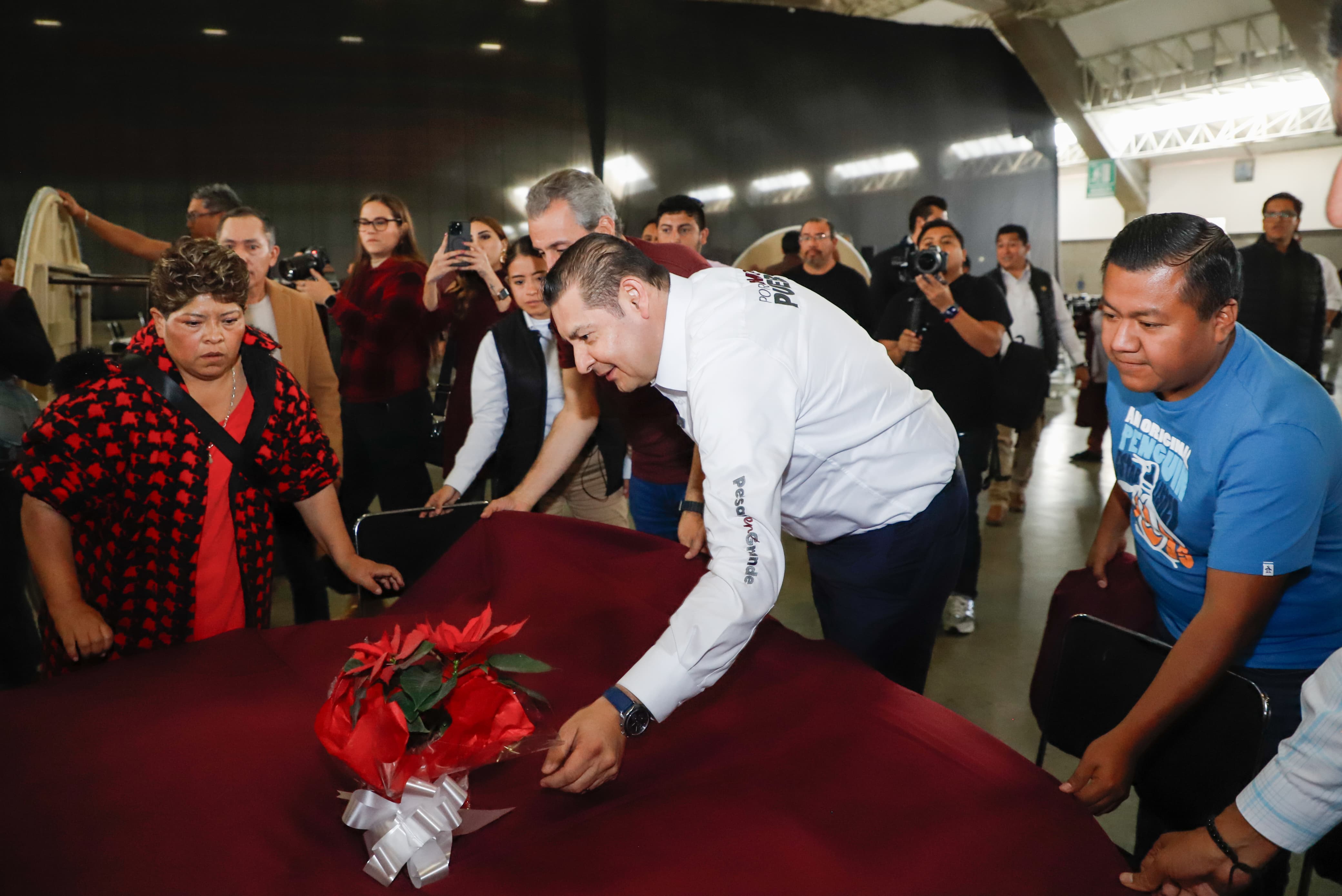 PUEBLA, Pue.- Como parte de las acciones del gobierno humanista y con bioética social, el mandatario estatal Alejandro Armenta, acudió al Centro Expositor junto con el presidente municipal José Chedraui, para ayudar en el montaje y acondicionamiento del espacio donde se efectuará la cena de fin de año que recibirá a más de 3 mil poblanas y poblanos que no tienen dónde celebrar.