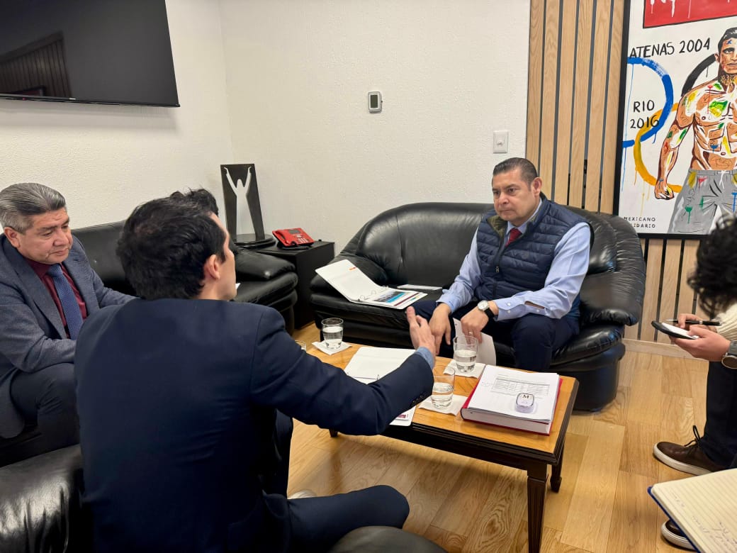 CIUDAD DE MÉXICO.- El gobernador Alejandro Armenta sostuvo una reunión de trabajo con el director de la Comisión Nacional de Cultura Física y Deporte (CONADE), Rommel Pacheco, acompañado por la secretaria del Deporte y Juventud, Gaby “La Bonita” Sánchez, con el objetivo de coordinar esfuerzos para que Puebla esté alineado a la política de la presidenta Claudia Sheinbaum, rumbo a los Juegos Olímpicos de Los Ángeles 2028 y para que disciplinas como el Box sean tomadas en cuenta en estas competencias deportivas.