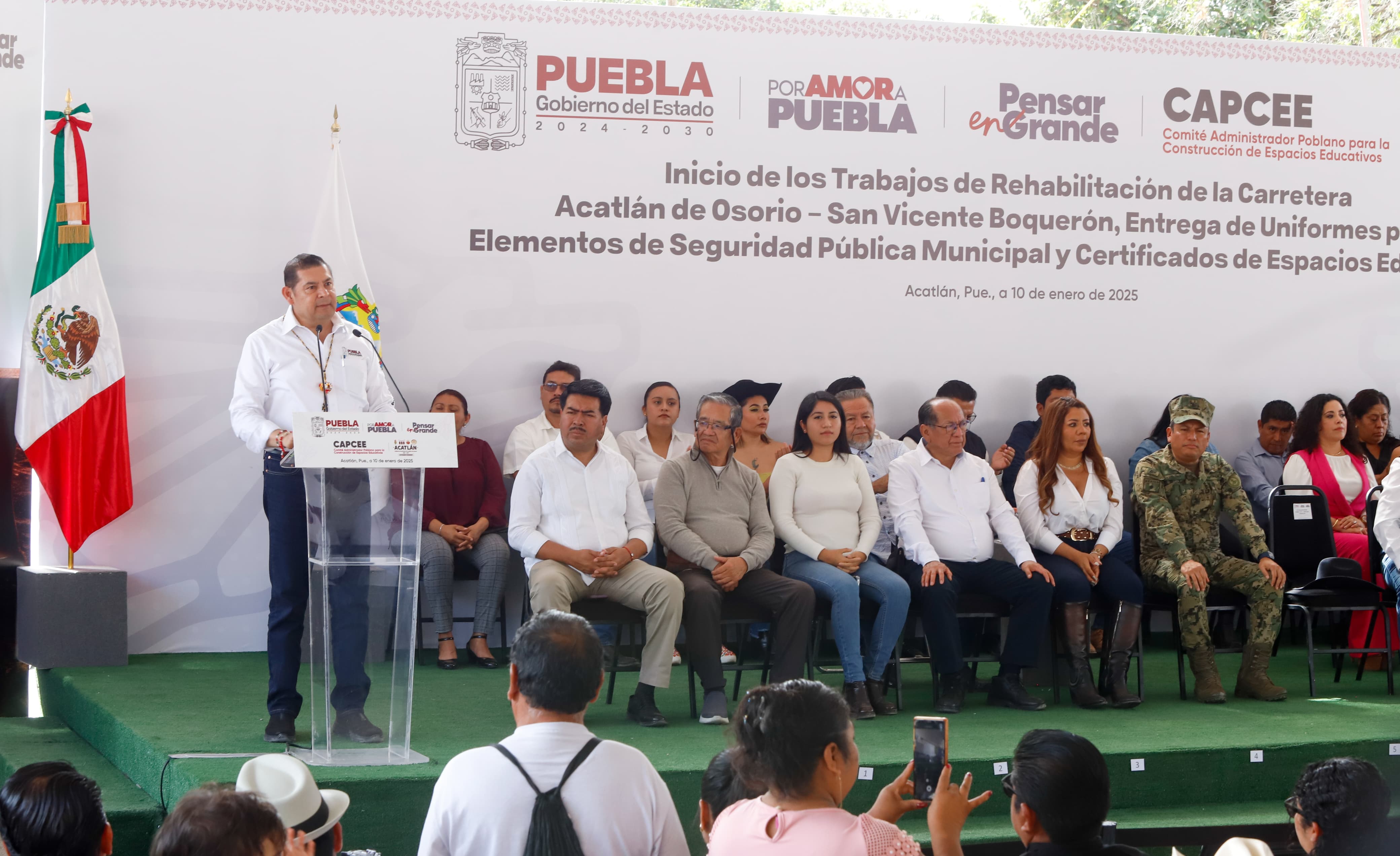 En el evento, el gobernador de Puebla dio el banderazo de inicio a los trabajos de rehabilitación de la Carretera Acatlán de Osorio – San Vicente Boquerón, obra que contará con una inversión superior a los 14 millones de pesos, provenientes de recursos estatales y municipales y beneficiará a 37 mil 955 habitantes, quienes agradecieron el impulso al desarrollo de Acatlán.