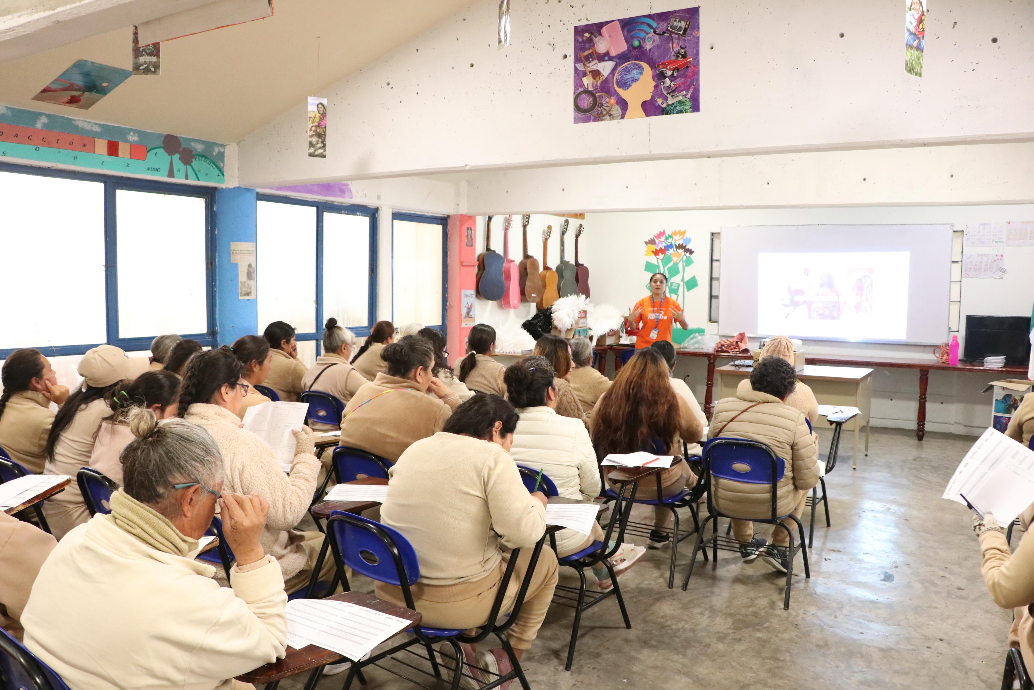 - Dando cumplimiento a la “Ruta de atención al Centro Penitenciario Femenil de Ciudad Serdán, Derecho al Cuidado”, se capacita a la población interna.
