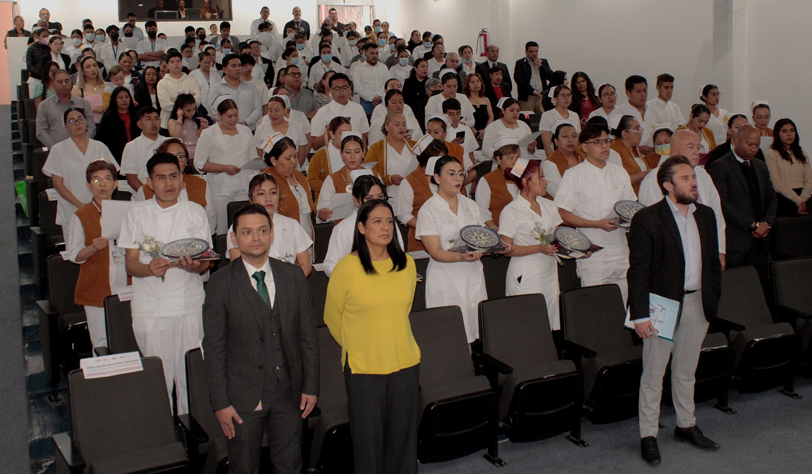 Al presidir la ceremonia de graduación de la 8a. Generación de Pasantes de Enfermería y presentación de la Décima grupo 2025, y en un hecho sin precedentes, el director general, Luis Antonio Godina Herrera anunció el ofrecimiento de ocho plazas laborales para las y los egresados que deseen incorporarse al Hospital de Especialidades del Instituto.