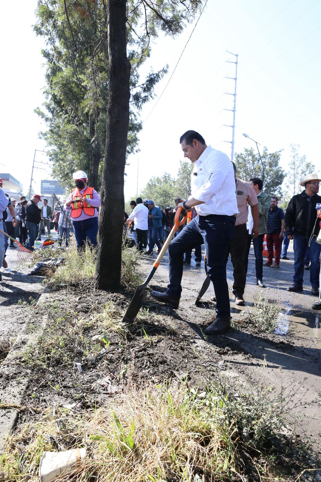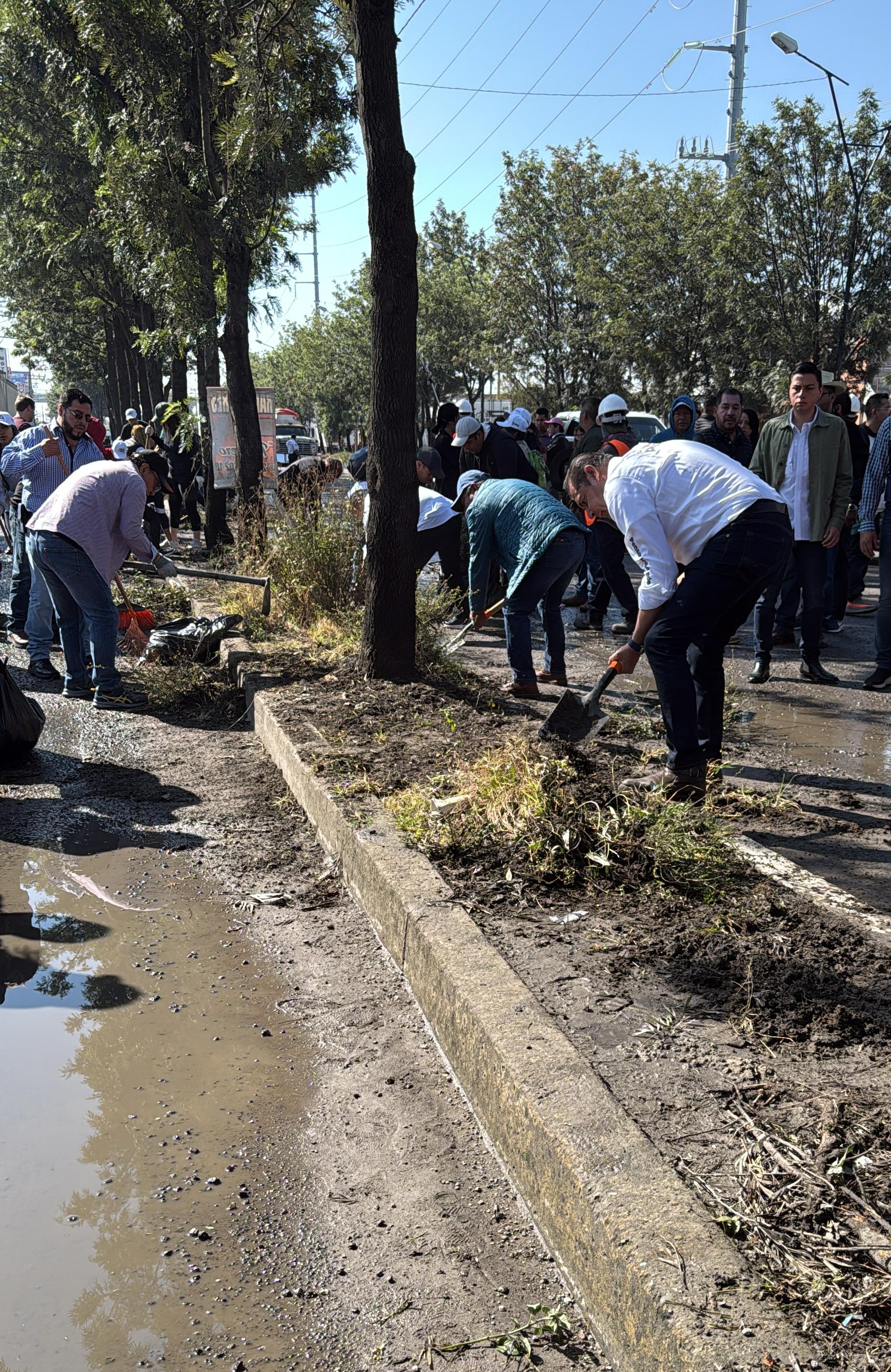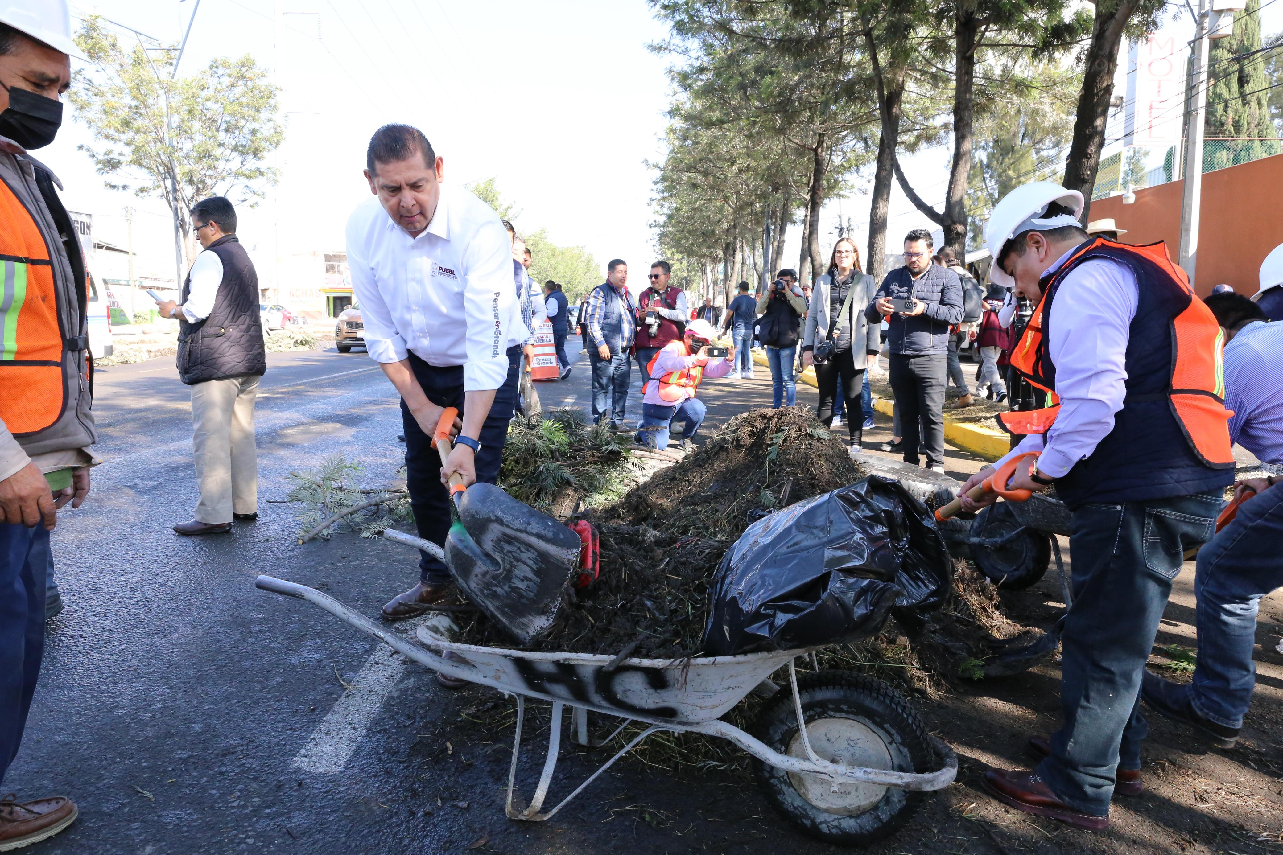 * Con brigadas de diferentes dependencias, el gobernador encabezó su 4a faena en uno de los accesos de la ciudad que comunican con Tlaxcala.