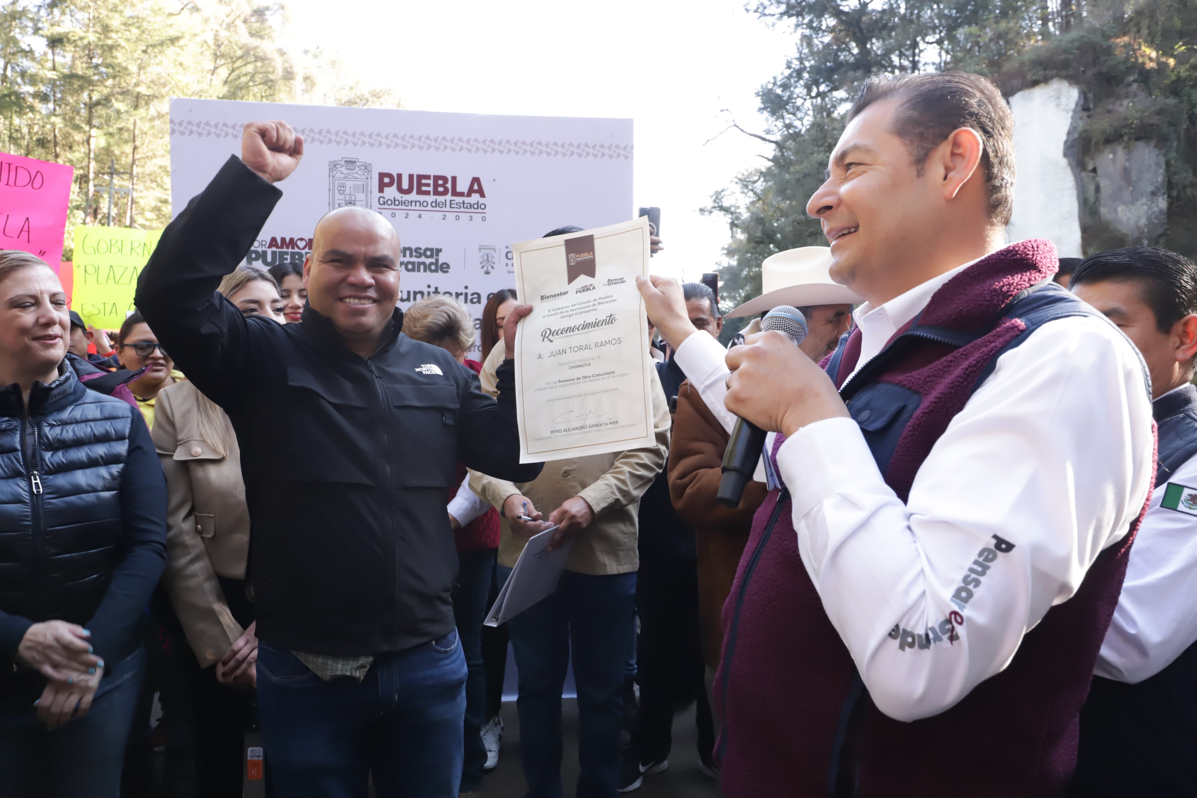 Durante la jornada, el mandatario entregó un reconocimiento al presidente municipal de Chignautla, Juan Toral Ramos, por ser promotor del Programa de Obra Comunitaria y el primer edil que realiza faenas cada semana. "Todos los presidentes que hagan faena con su pueblo, les vamos a dar un reconocimiento y no es un papelito, significa que lo vamos a apoyar con obra en todas sus comunidades".