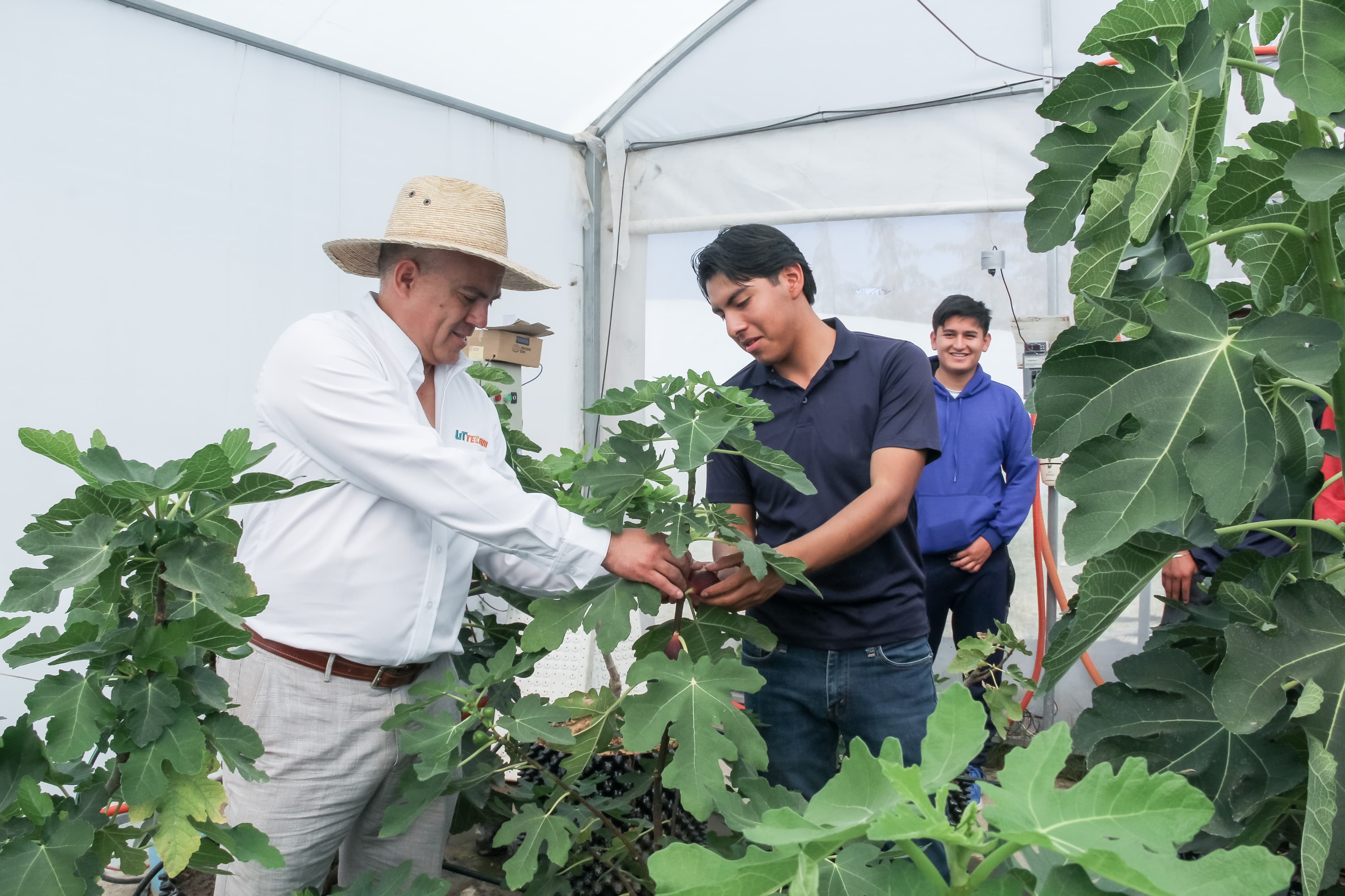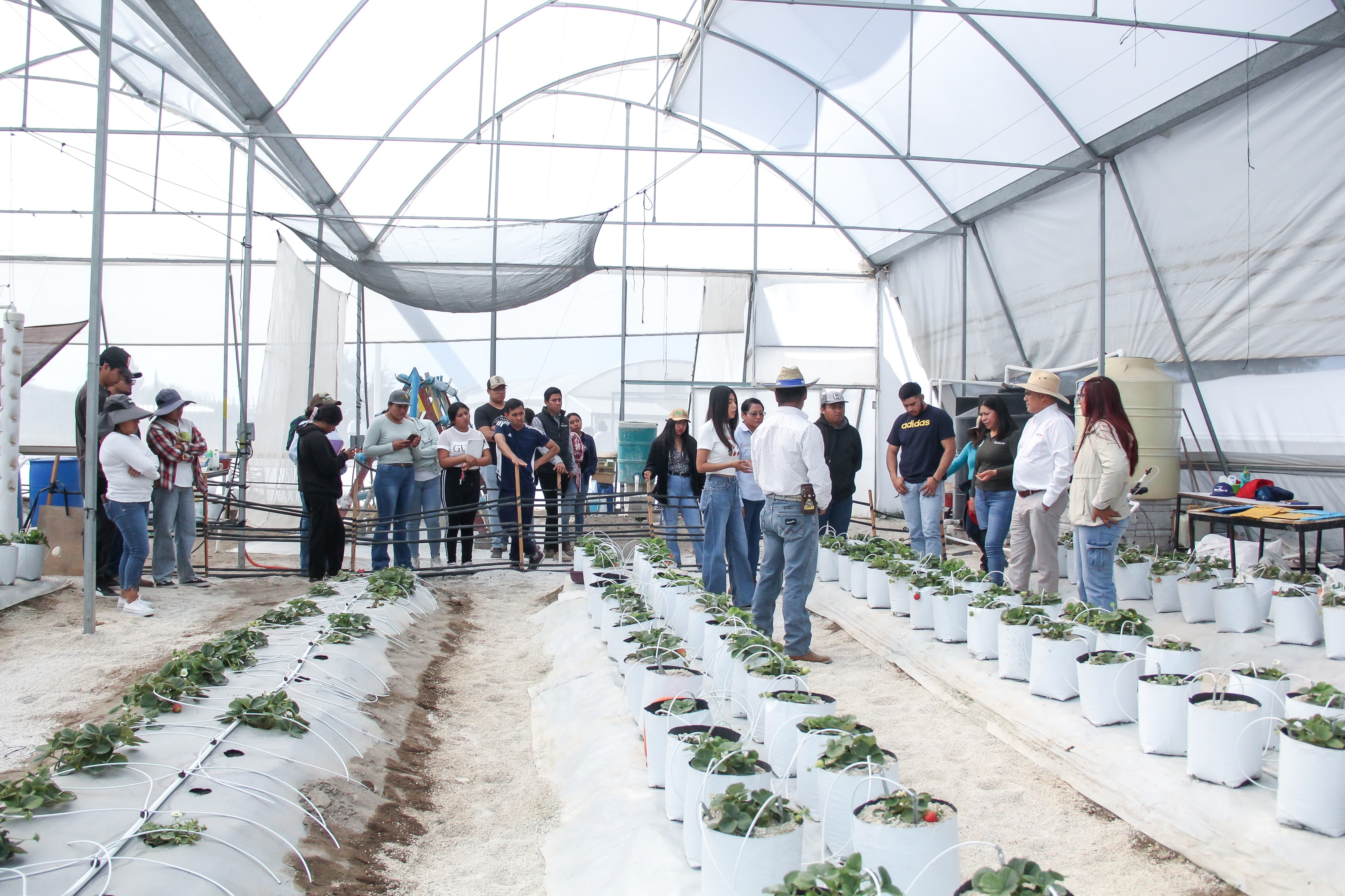 Durante un recorrido por las 2.7 hectáreas del campo experimental, se supervisaron las unidades de agricultura protegida, que incluyen invernaderos, áreas de cultivo a cielo abierto, macro y microtúneles. En estos espacios, las y los alumnos aplican conocimientos en fertilización orgánica, producción de cultivos de ciclo corto y manejo de árboles frutales, entre ellos aguacate, manzana, tejocote y pitaya.