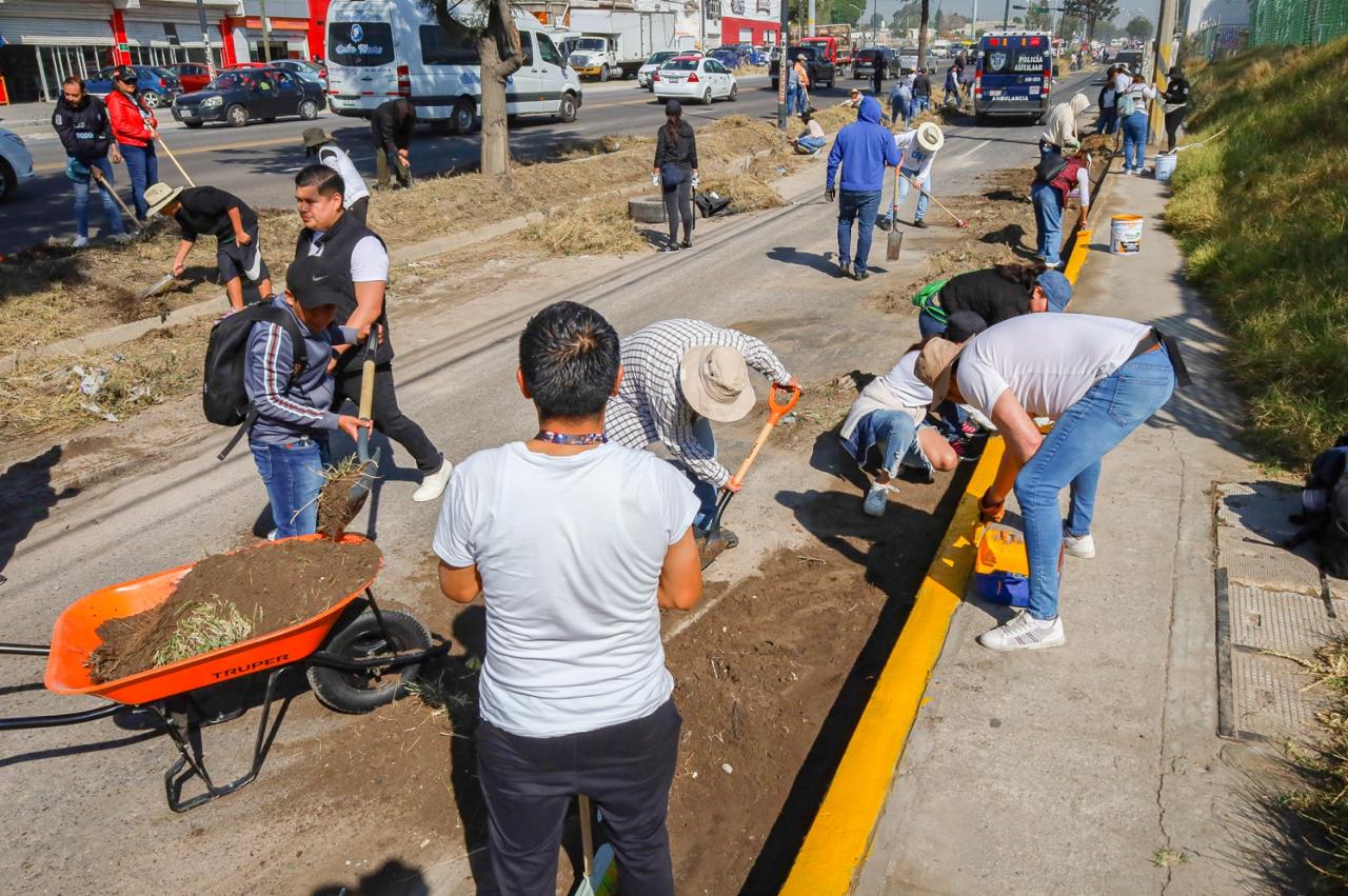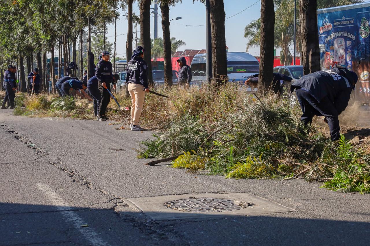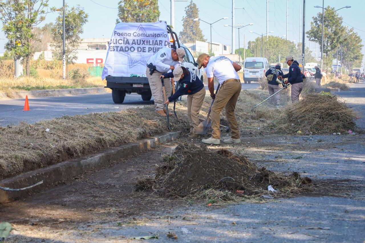 CIUDAD DE PUEBLA, Pue.- Con el ejemplo y liderazgo del gobernador Alejandro Armenta y por Amor a Puebla, más de 250 servidores públicos del personal administrativo y operativo de la Policía Auxiliar, realizaron una faena comunitaria en la Carretera Federal Puebla-Tlaxcala, con el propósito de promover la organización y embellecimiento de los espacios públicos de la entidad.