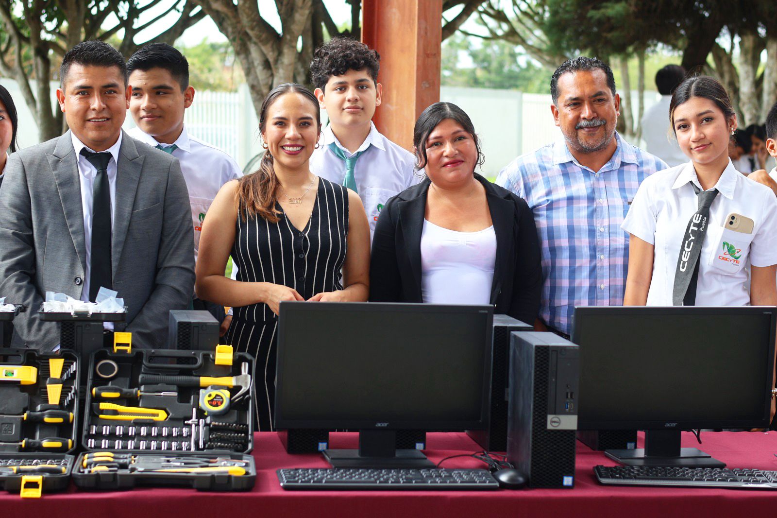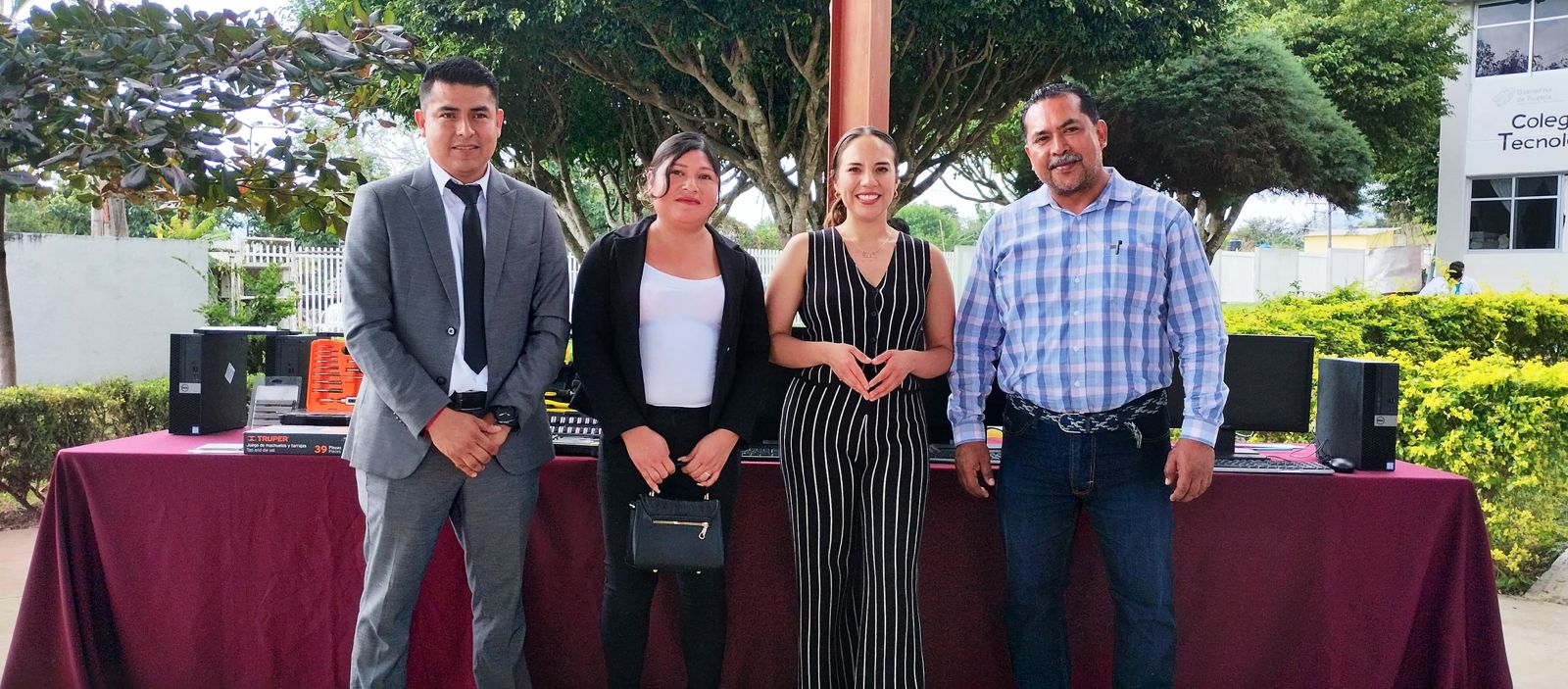 VENUSTIANO CARRANZA, Pue.- En el marco del inicio del semestre B, la directora general del Colegio de Estudios Científicos y Tecnológicos del Estado de Puebla (CECyTE), Estebi Fernández, visitó el plantel Venustiano Carranza, donde fue testigo de la entrega de equipo de cómputo y herramientas para laboratorios, gestionados por el comité de padres de familia.