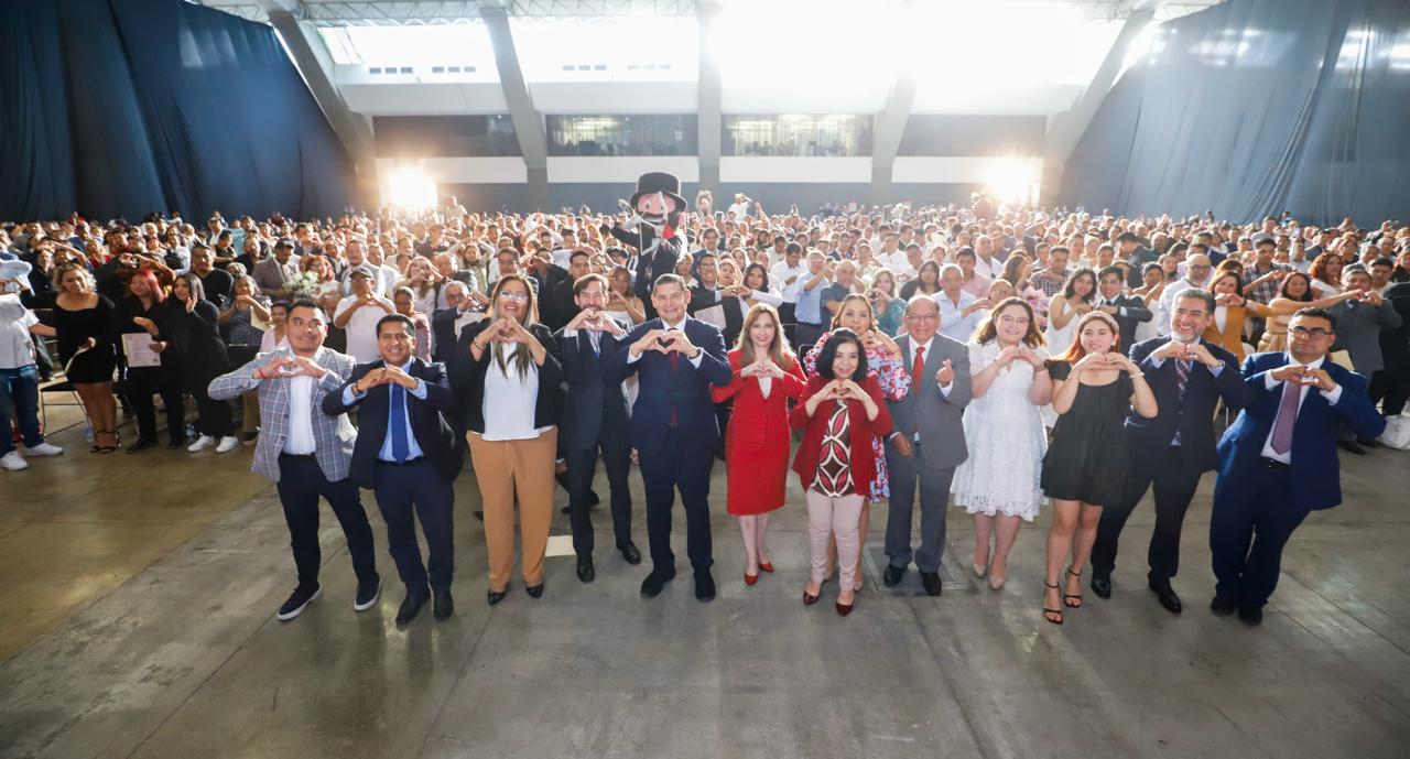 CIUDAD DE PUEBLA, Pue.- Al destacar que hacer pareja implica comprensión y disposición para mantener la estabilidad, el gobernador Alejandro Armenta presidió la Celebración de Matrimonios Gratuitos, donde 350 parejas obtuvieron certeza jurídica.