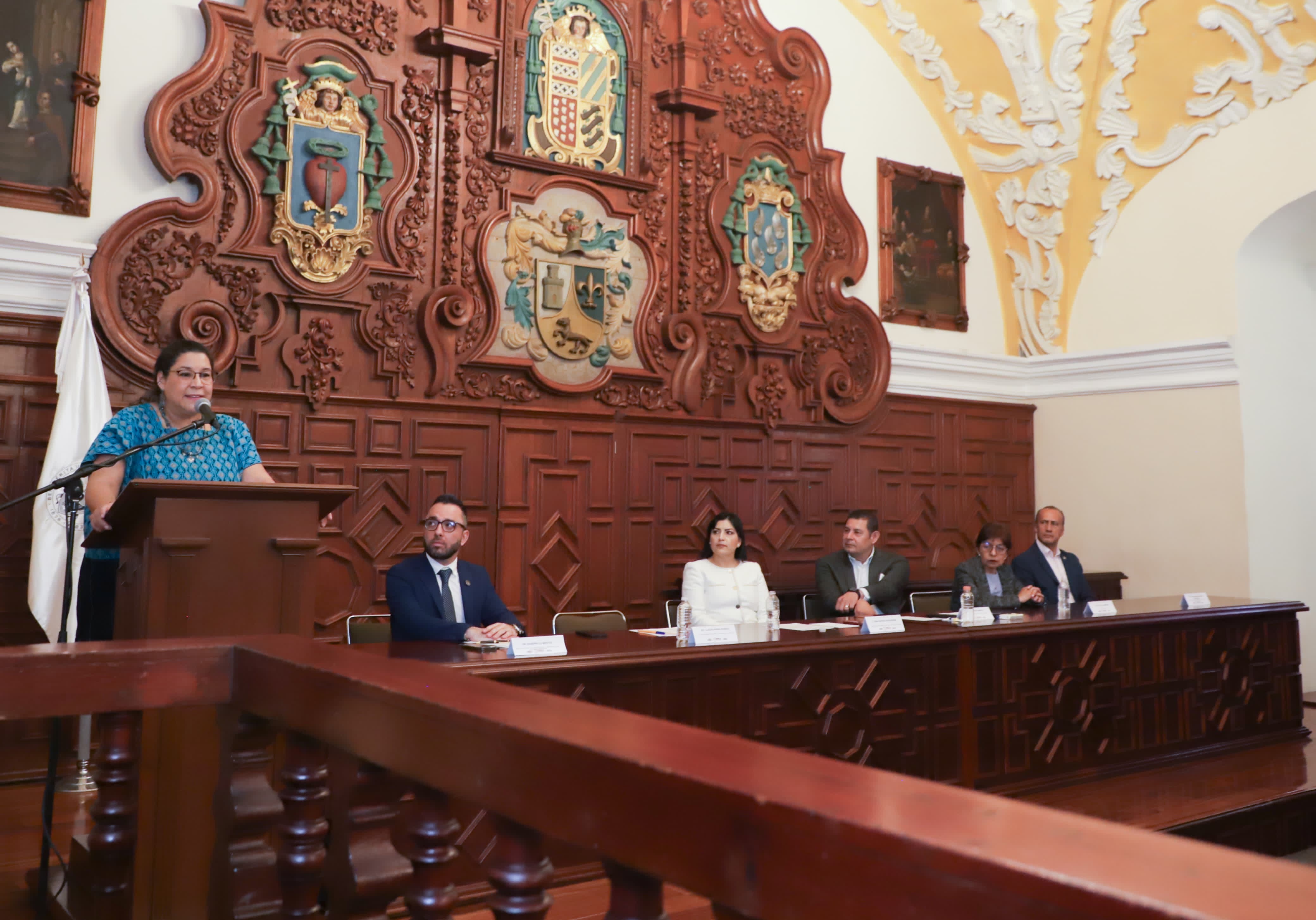 * La ministra de la Suprema Corte de Justicia de la Nación, Lenia Batres Guadarrama, pidió profundizar la democracia a través de la elección de jueces y ministros, en un conversatorio celebrado en el Salón Barroco del Edificio Carolino de la BUAP.