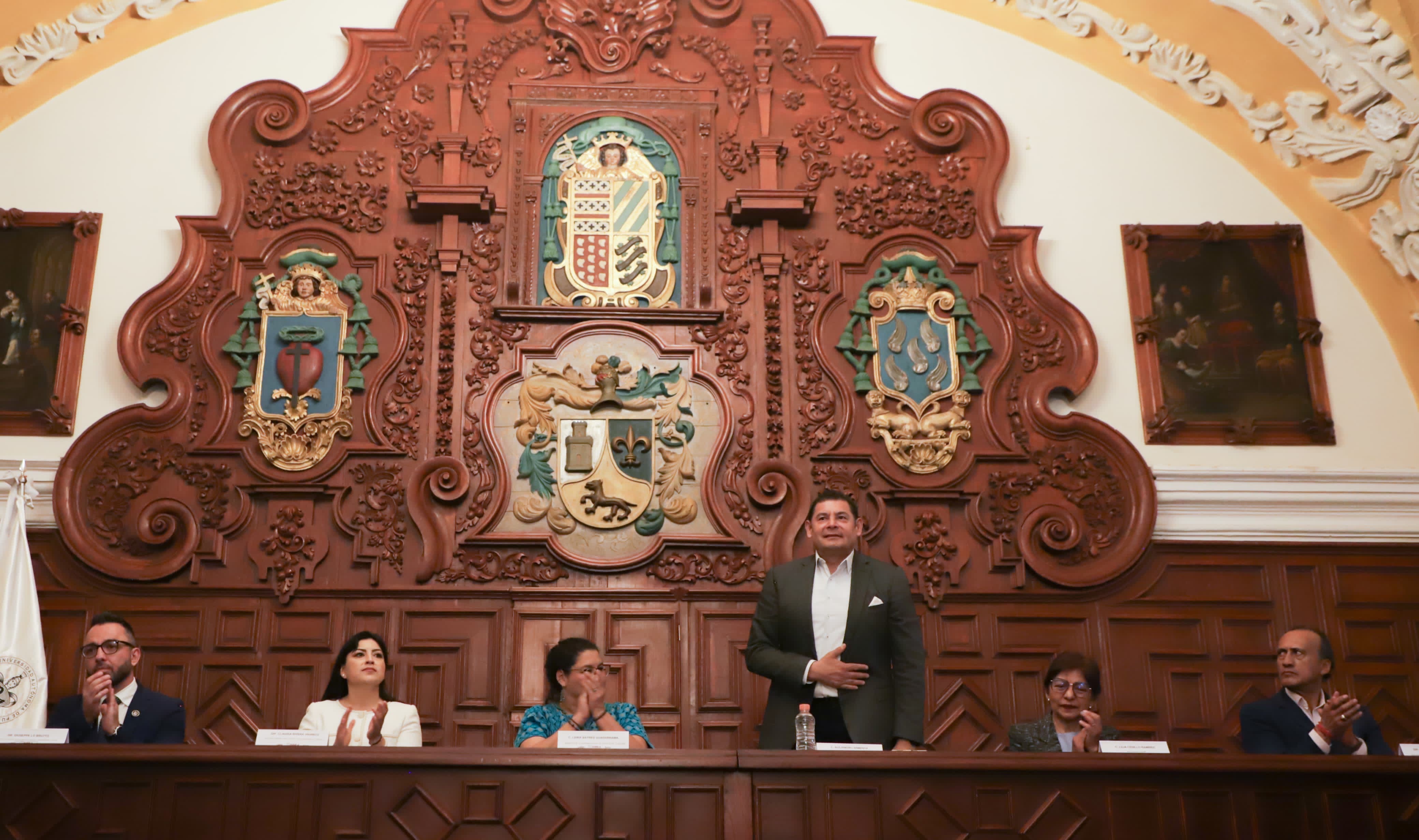 CIUDAD DE PUEBLA, Pue.- Los poderes públicos, en su origen, nacen para organizar la vida democrática de las naciones, aseguró el gobernador Alejandro Armenta, durante el Conversatorio "Reforma al Poder Judicial de la Federación", encabezado por la ministra de la Suprema Corte de Justicia de la Nación, Lenia Batres Guadarrma, en el Salón Barroco del Edificio Carolino de la BUAP.