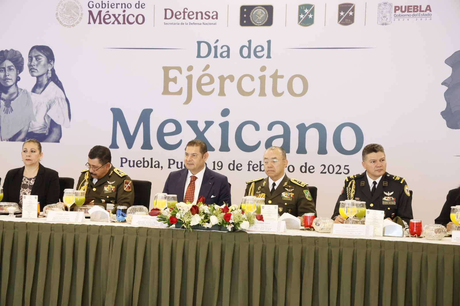 Al evento acudieron el comandante interino de la VI Región Militar, Héctor Ávila Alcocer; el coordinador de la Guardia Nacional en Puebla, Víctor Javier Mandujano Acevedo; el titular de la Fiscalía General de la República, José López Trujillo; las presidentas del Congreso de Puebla y del Tribunal Superior de Justicia, Laura Artemisa García y María Belinda Aguilar Díaz, respectivamente; el secretario de Gobernación, Samuel Aguilar Pala, el titular de Seguridad Pública, vicealmirante Francisco Sánchez González; la titular de la Fiscalía General del Estado, Idamis Pastor Betancourt; y el secretario de Educación Pública, Manuel Viveros Narciso.