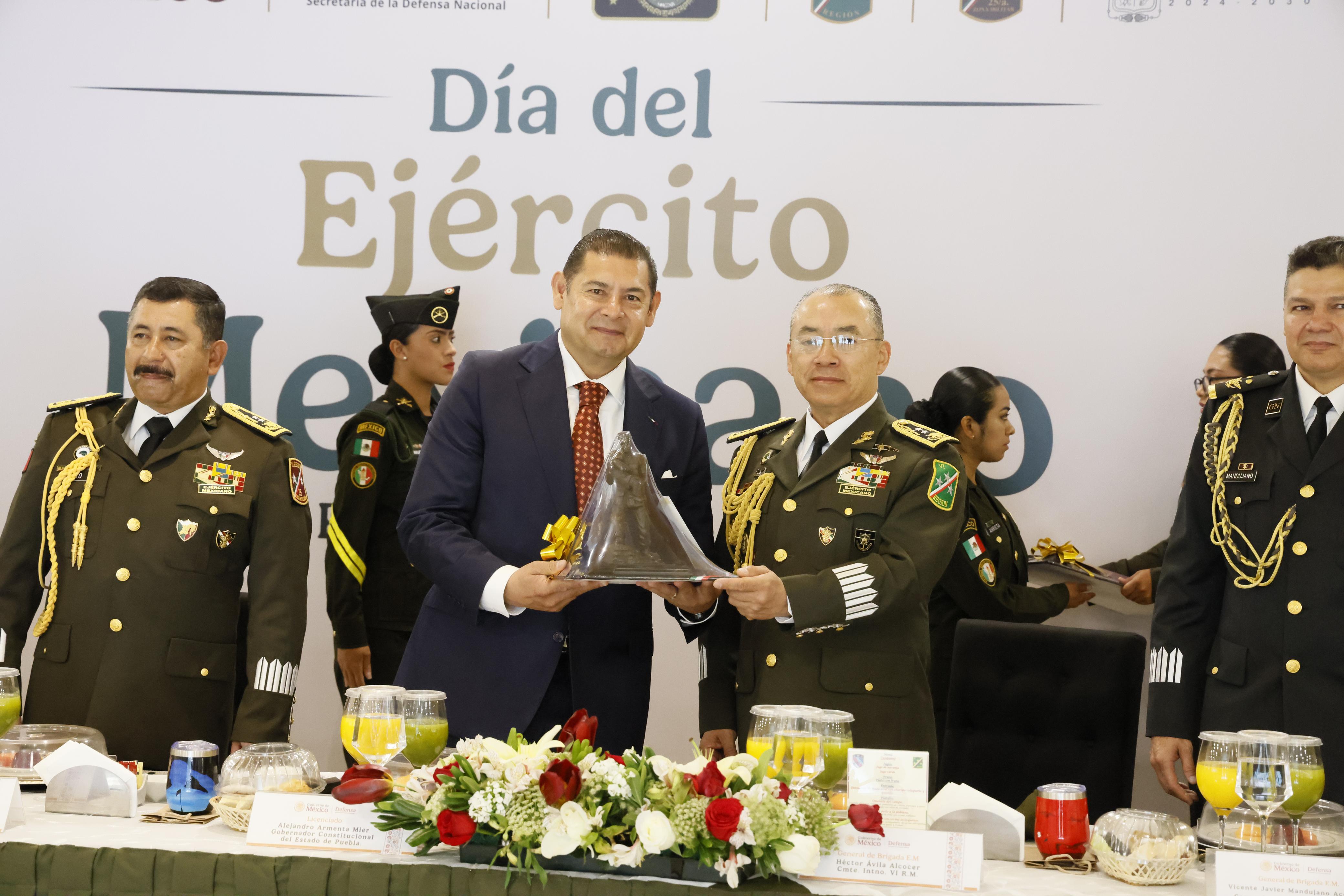 CIUDAD DE PUEBLA, Pue.- Para el Gobierno de Puebla es fundamental reconocer la labor que el Ejército Mexicano encabeza a favor de la patria, aseveró el gobernador Alejandro Armenta al asistir a la celebración del Día del Ejército Mexicano en la Escuela Militar de Sargentos de la XXV Zona Militar.