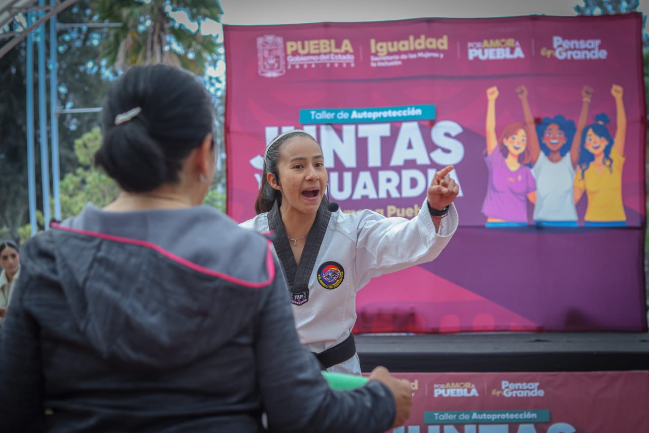 CIUDAD DE PUEBLA, PUE. - Más de 400 mujeres han fortalecido su seguridad y confianza gracias al taller "Juntas y en Guardia Por Amor a Puebla", impulsado por el Gobierno de Puebla, encabezado por Alejandro Armenta, a través de la Secretaría de la Mujer e Igualdad Sustantiva.
