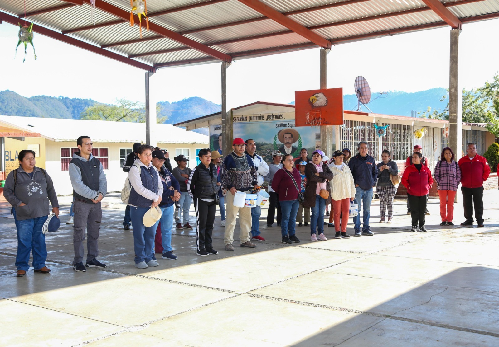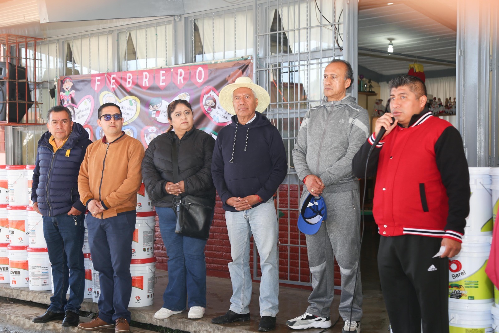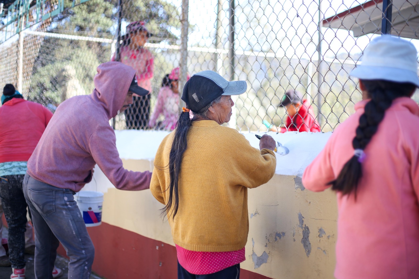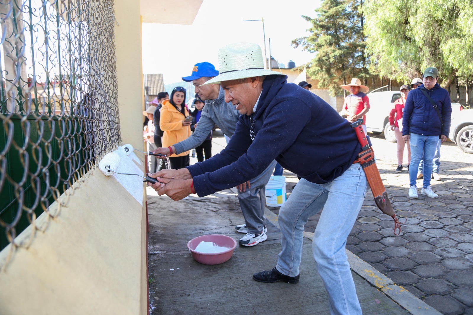• Las autoridades junto a la comunidad de Temextla y docentes, pintaron el plantel y limpiaron los espacios al aire libre.