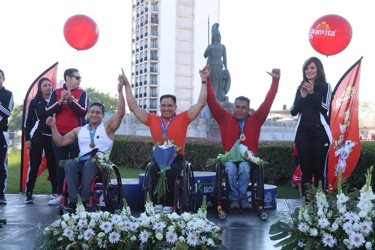 GUADALAJARA, Jal.- Los para atletas poblanos Gonzalo Valdovinos y José Alan Frías colocaron el nombre de la entidad en todo lo alto al hacer el 1-2 en el podio dentro de la edición 39 del Medio Maratón de Guadalajara, cuyo verificativo tuvo este domingo en tierras tapatías logrando un registro de 52 minutos y 16 segundos para el primer sitio, mientras que el segundo puesto logró una marca de 54 minutos y 10 segundos, en un podio completado por Fidel Aguilar Zepeda con tiempo de 57 minutos y 27 segundos.