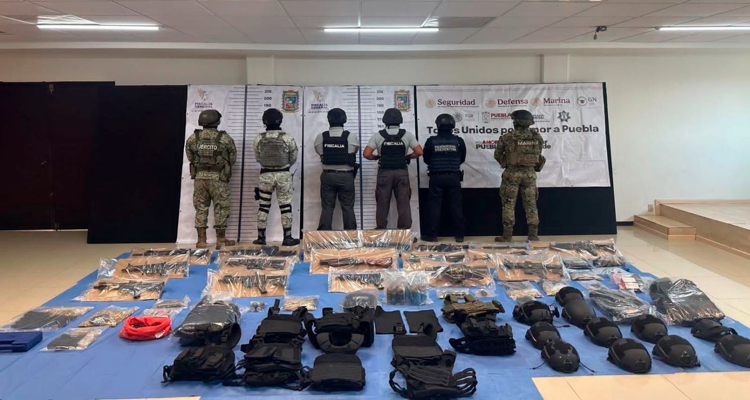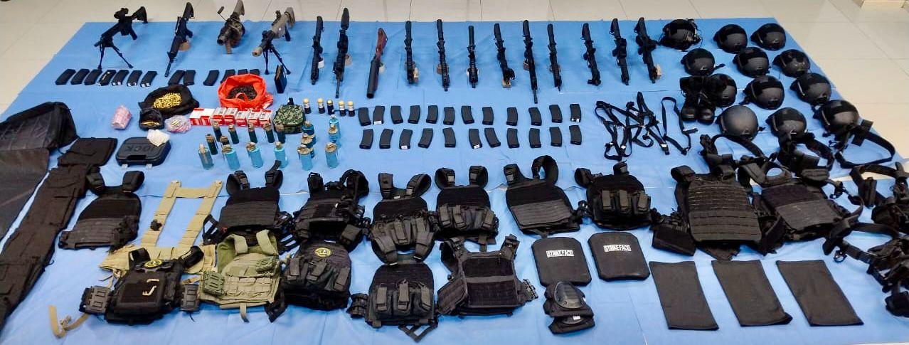 Resultado de esta acción interinstitucional se decomisaron 14 armas de fuego largas, entre las que destaca un fusil semiautomático, 36 cargadores, mil 810 cartuchos útiles de diversos calibres, dos objetos tipo lanza grandas, cinco granadas calibre 40 milímetros, 16 latas de gas pimienta y equipo táctico como chalecos y cascos balísticos.