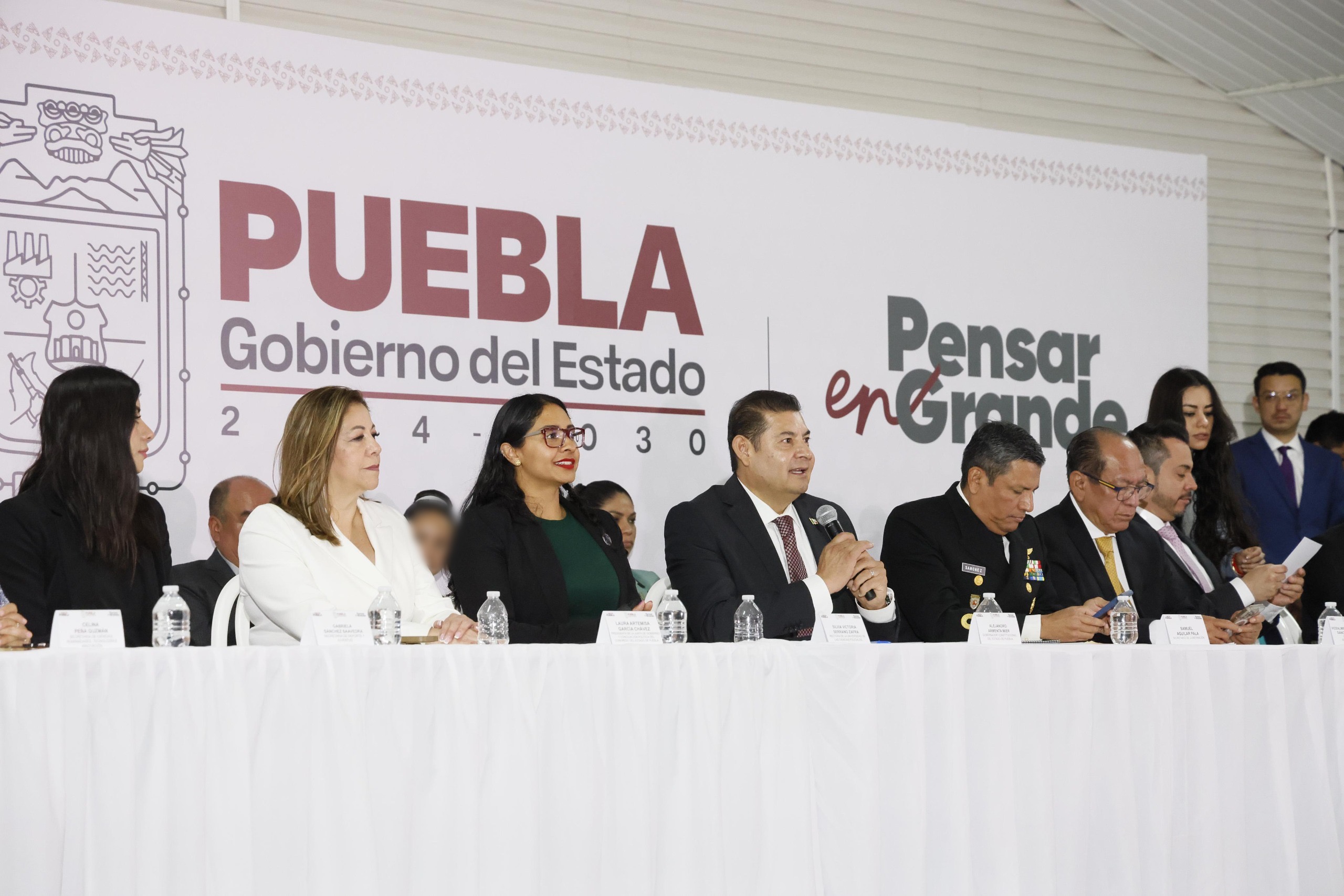 Durante la mañanera también estuvo presente el secretario de Gobernación, Samuel Aguilar Pala; el coordinador de Gabinete, José Luis García Parra; el titular de Seguridad Pública, vicealmirante Francisco Sánchez González; la presidenta del Congreso del Estado de Puebla Laura Artemisa García; el secretario de Educación, Manuel Viveros Narciso; la secretaria de Ciencia, Humanidades y Tecnológica, Celina Peña Guzmán; la titular de la Secretaría de Deporte y Juventud, Gabriela Sánchez Saavedra; el titular del Consejo Estatal de Coordinación del Sistema Nacional de Seguridad Pública (CECSNSP), Humberto Aguilar Viveros y la directora de SICOM, Natalie Hoyos López.