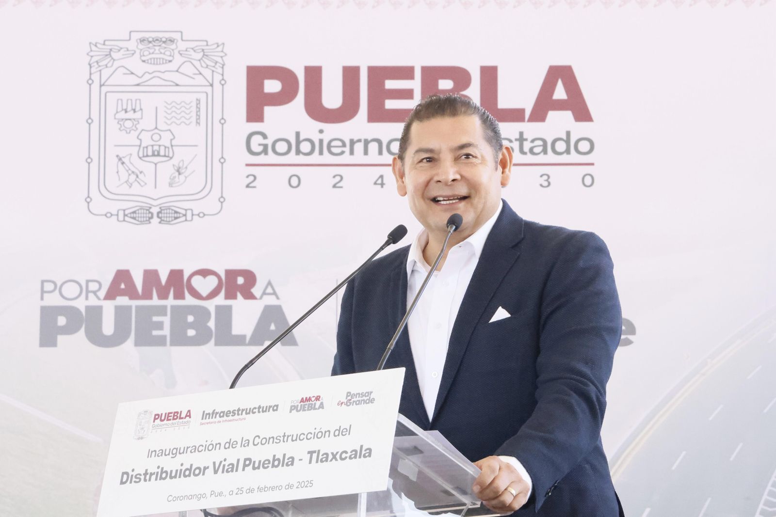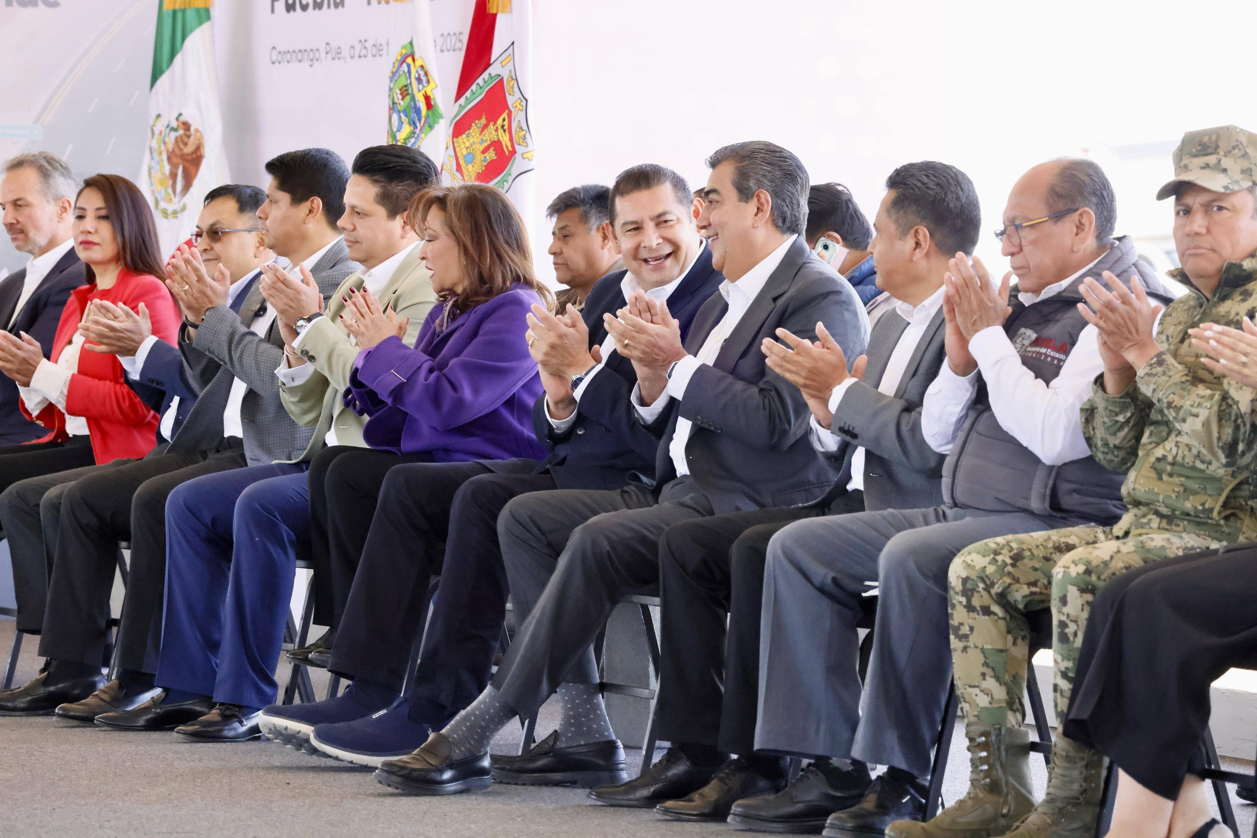 CORONANGO, Pue.- Al inaugurar el Distribuidor Vial Puebla -Tlaxcala el mandatario Alejandro Armenta reconoció el trabajo en equipo del ex gobernador Sergio Salomón Céspedes y la gobernadora de Tlaxcala, Lorena Cuéllar, para impulsar la construcción de esta obra emblemática que beneficia a las y los habitantes de ambos estados.