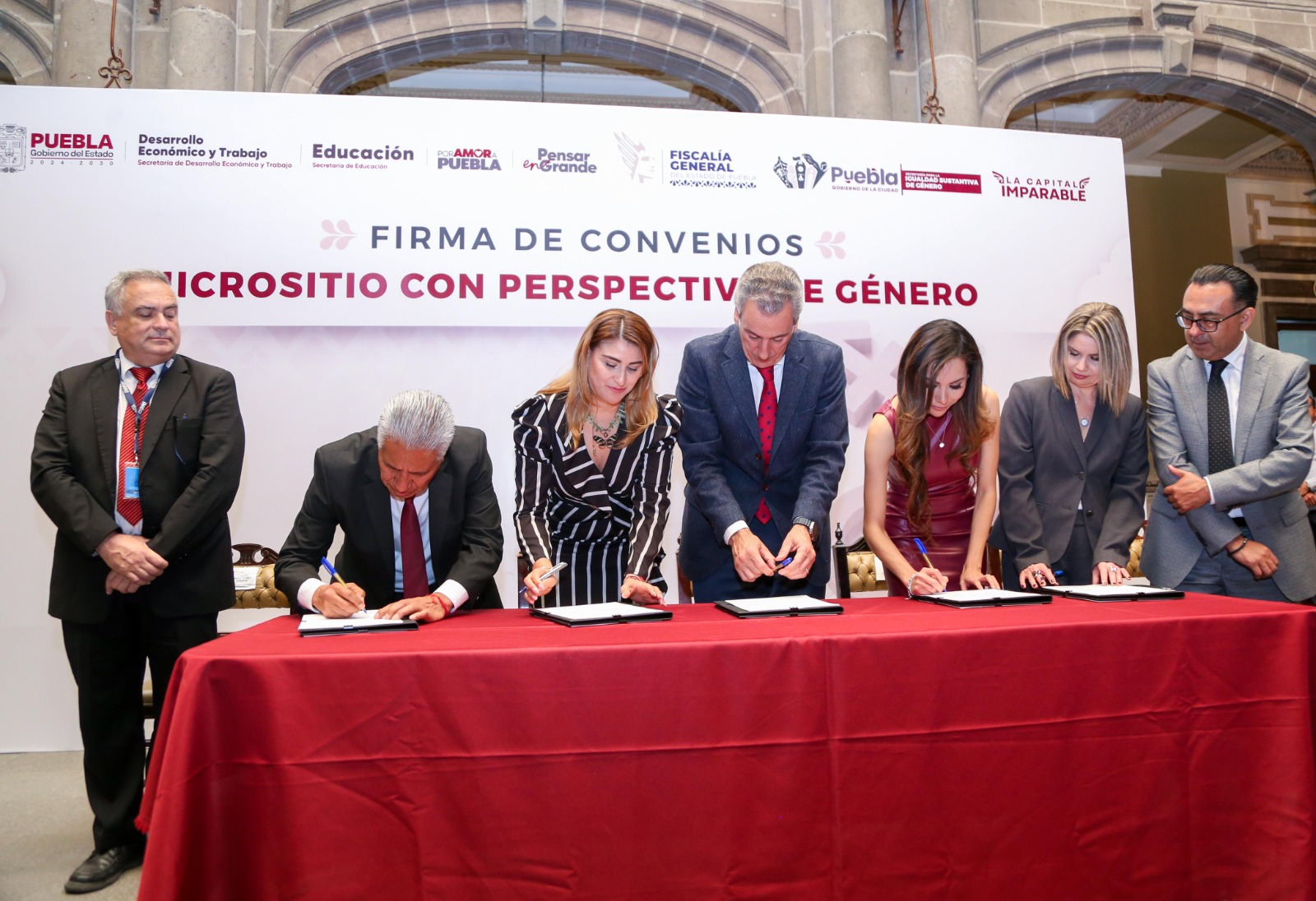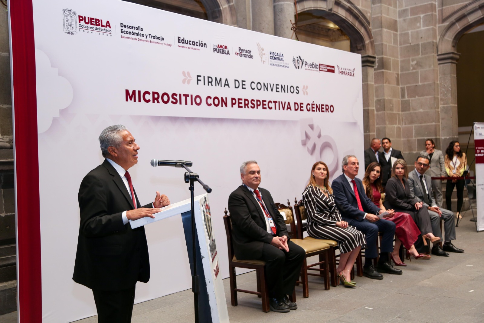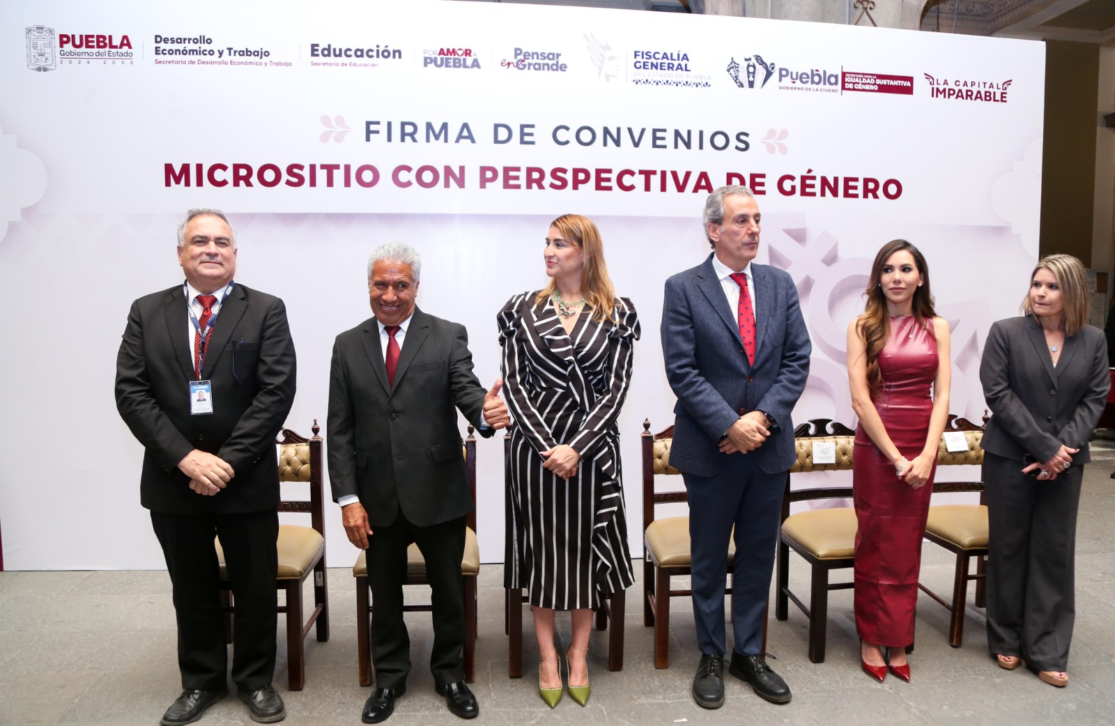 CIUDAD DE PUEBLA, Pue.- El Gobierno de Puebla, a través del titular de la Secretaría de Educación, Manuel Viveros Narciso, participó en la firma de convenio del Micrositio con Perspectiva de Género, realizado en el Ayuntamiento de Puebla. Al evento acudieron el alcalde de Puebla, José Chedraui Budib; la Fiscal General Idamis Pastor Betancourt y la subsecretaria de Industria y Comercio de la Secretaría de Desarrollo Económico y Trabajo, Mónica Barrientos Sánchez.