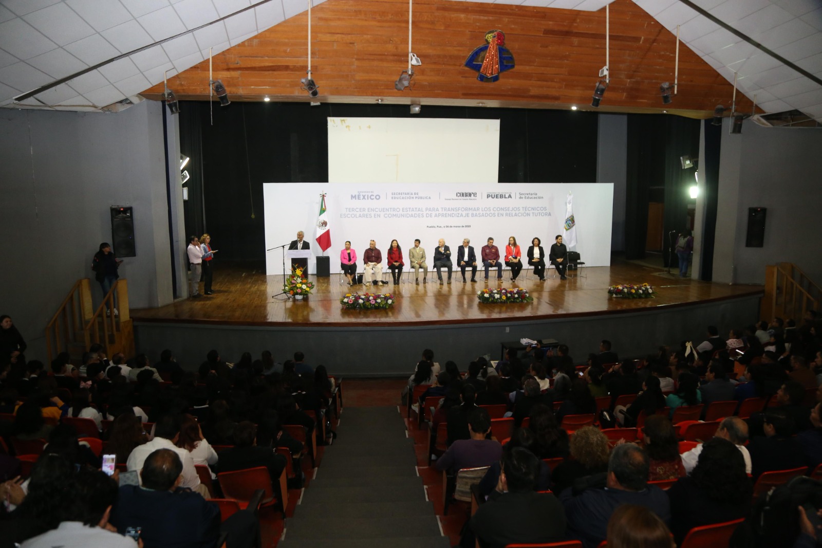 CIUDAD DE PUEBLA, Pue.- La Secretaría de Educación participó en el Tercer Encuentro Estatal para Transformar los Consejos Técnicos Escolares en Comunidades de Aprendizaje Basados en Relación Tutora. El evento fue encabezado por el Consejo Nacional de Fomento Educativo (CONAFE) con el objetivo de fortalecer el trabajo académico en la Educación Obligatoria, enmarcado en los conceptos de la Nueva Escuela Mexicana.