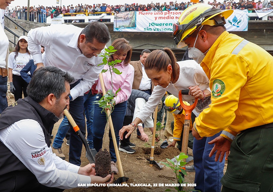 TEPETITLA DE LARDIZÁBAL, Tlax.- Con el firme compromiso de sanear el Río Atoyac y de mitigar los efectos de su contaminación, la presidenta Claudia Sheinbaum encabezó el inicio del programa de limpieza y restauración en colaboración con los gobiernos de Tlaxcala y Puebla, en el que estuvieron presentes los mandatarios de ambas entidades, Lorena Cuéllar y Alejandro Armenta, respectivamente, así como con diversas dependencias federales, estatales y municipales.