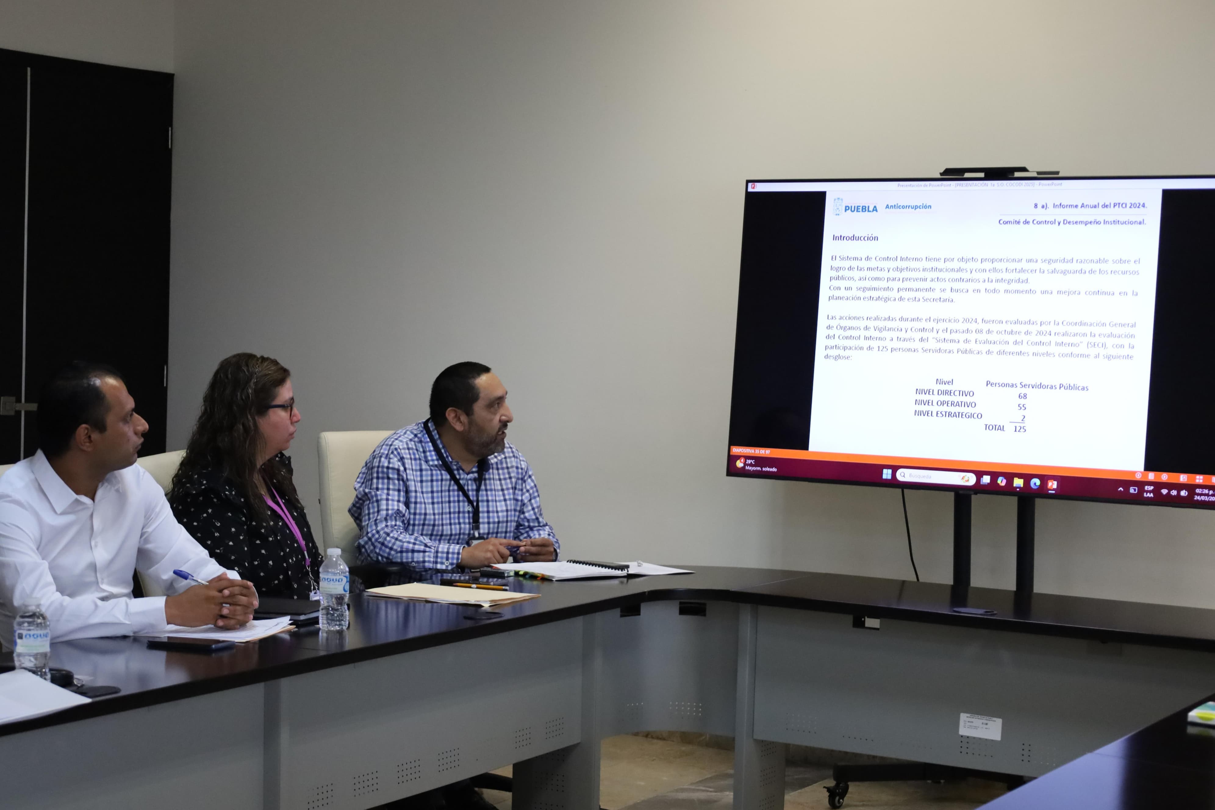 CIUDAD DE PUEBLA, Pue.- De acuerdo con la visión del gobernador Alejandro Armenta de lograr un gobierno transparente y basado en la rendición de cuentas, la Secretaría Anticorrupción y Buen Gobierno del Estado de Puebla, a través de su titular, Alejandro Espidio Reyes, llevó a cabo la Primera Sesión Ordinaria del Comité de Control Interno y Desempeño Institucional 2025 (COCODI), en donde se abordaron diferentes puntos relacionados con el seguimiento de programas presupuestarios, informes de actividades, auditorías realizadas y reporte de avances de las diversas dependencias de esta secretaría.