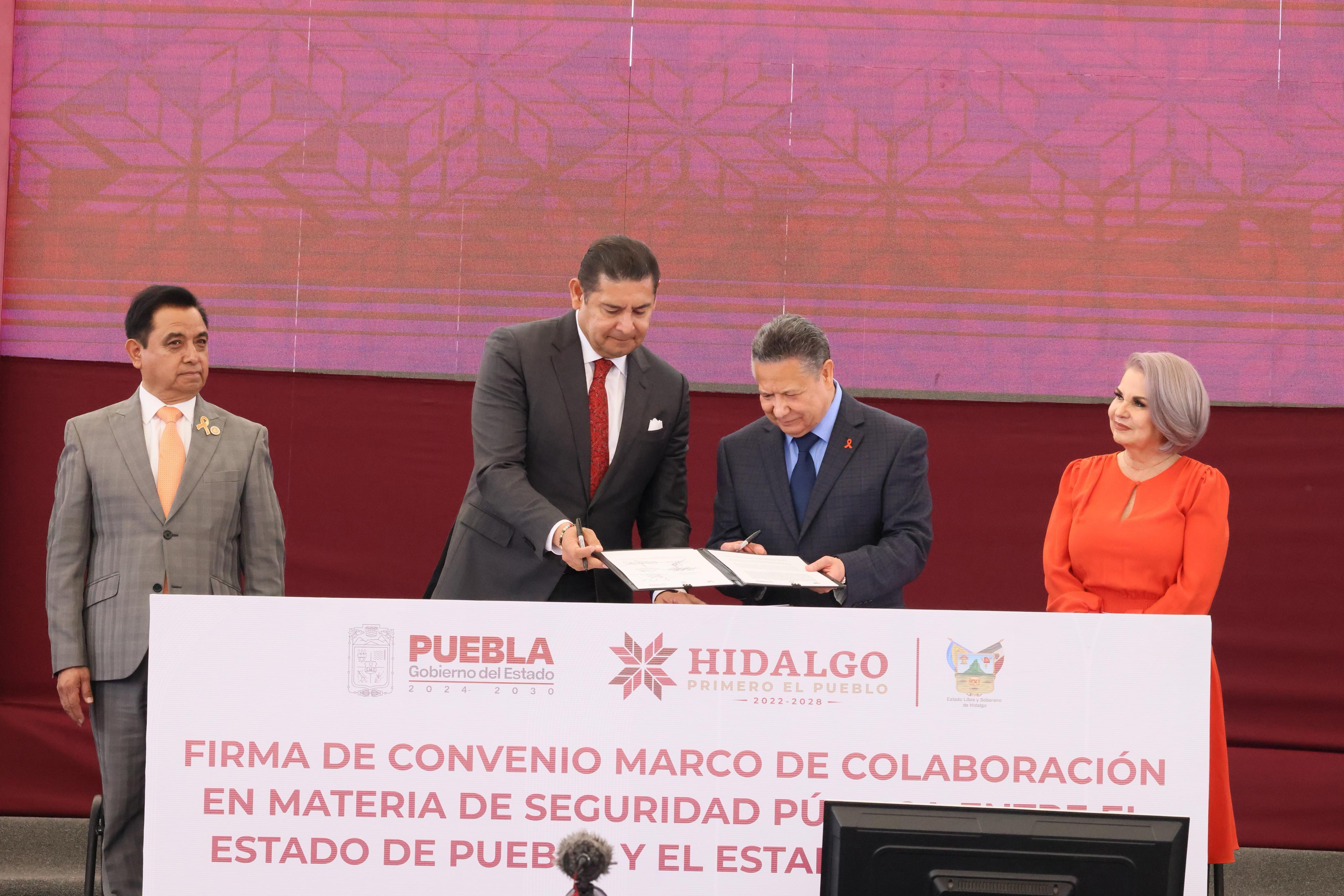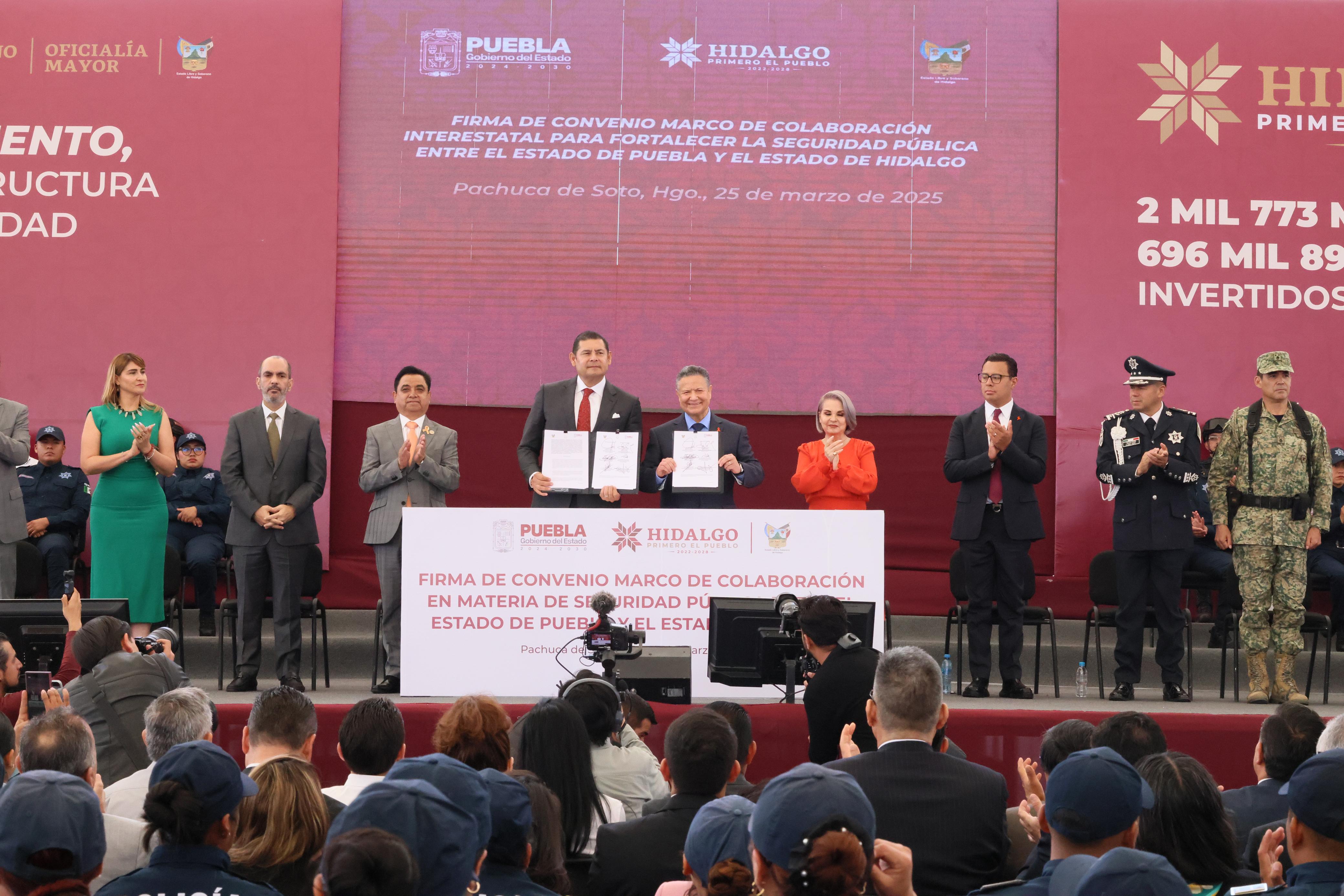 PACHUCA, Hidalgo.- En un esfuerzo conjunto para reforzar la seguridad en la región, los gobiernos de Puebla e Hidalgo firmaron un convenio de colaboración para el intercambio de información entre fiscalías, la cooperación de cuerpos de seguridad y el fortalecimiento de la infraestructura en municipios colindantes.