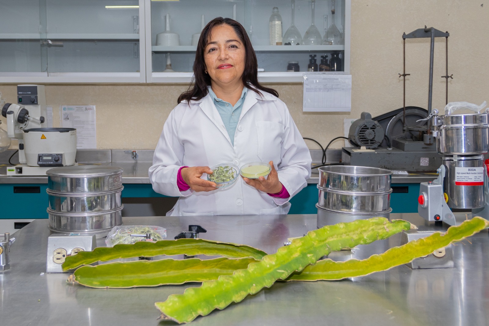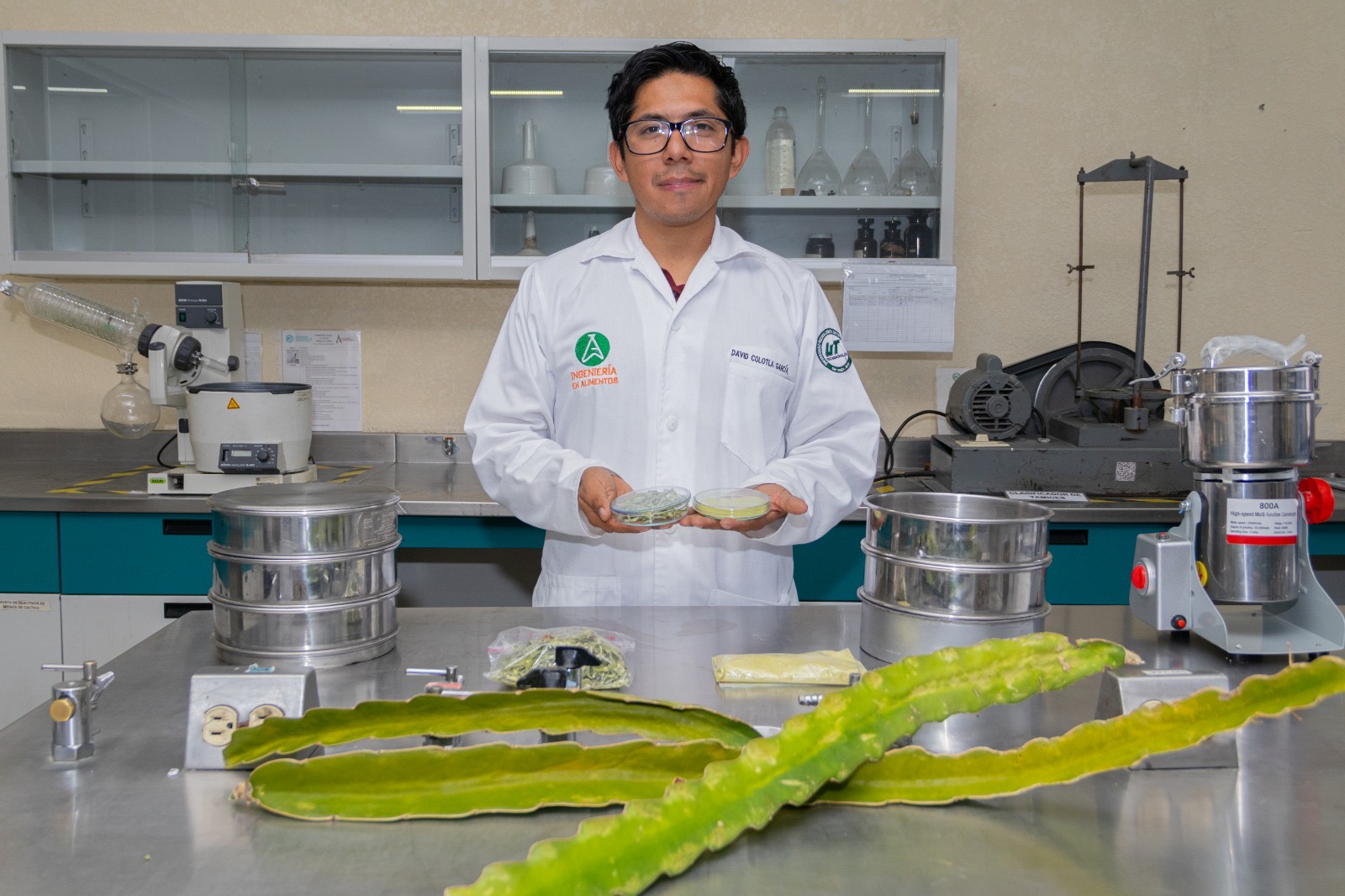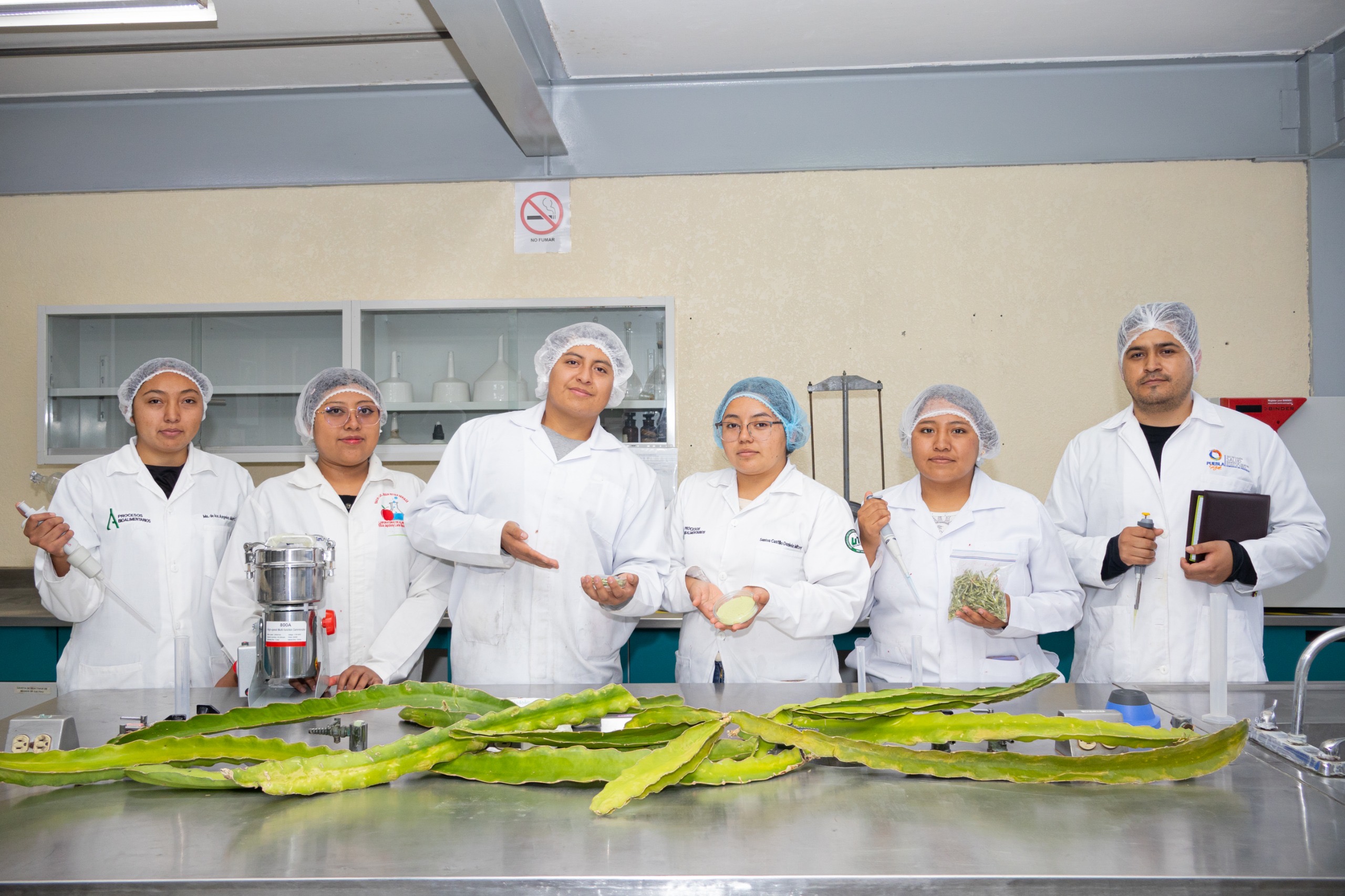 El equipo de investigación, conformado por los académicos de la UTTECAM del Programa Educativo de Ingeniería en Alimentos, José Arturo Olguín Rojas y Laura M. Aguilar Veloz, junto con el Centro de Investigación de Ciencias Agrícolas (CICA BUAP), representado por Yolanda Velázquez Juárez y José Víctor R. Tamariz Flores, asesoran a la alumna de Técnico Superior Universitario (TSU), Marvella Téllez Orosco. Ella, con su equipo de trabajo, desarrolla un estudio orientado a evaluar el efecto de las condiciones de secado sobre las propiedades tecnofuncionales de la harina de cladodio de pitahaya, con el objetivo de generar ingredientes que tengan aplicaciones potenciales en la industria alimentaria y otros sectores.
