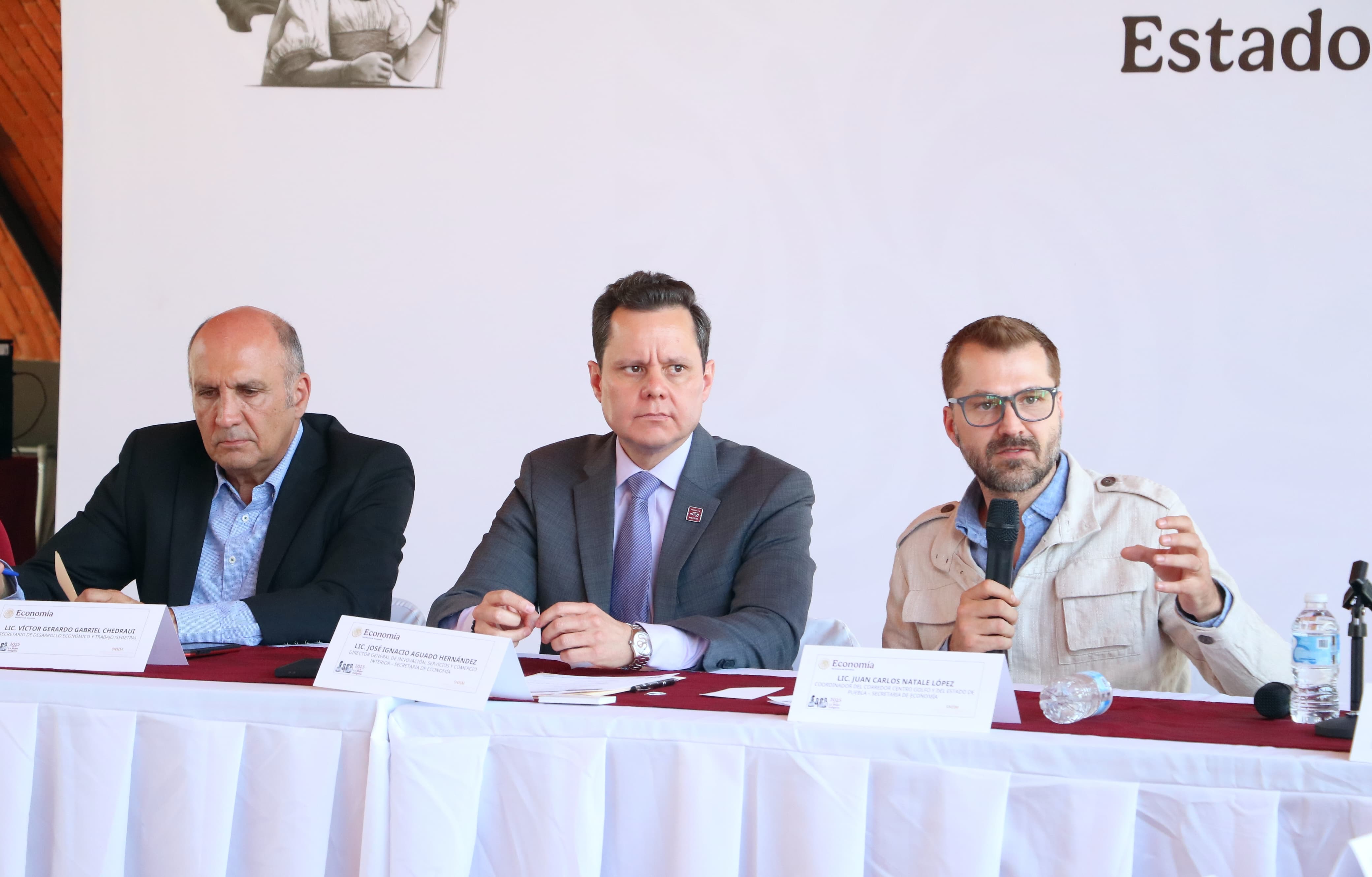 En representación del secretario de Economía, Marcelo Ebrard, asistieron al evento José Antonio Aguado, director general de Innovación, Servicios y Comercio Interior y Juan Carlos Natale, Coordinador del Corredor del Bienestar Centro Golfo. Por parte del gobierno estatal, el secretario de Desarrollo Económico y Trabajo, Víctor Gabriel Chedraui.