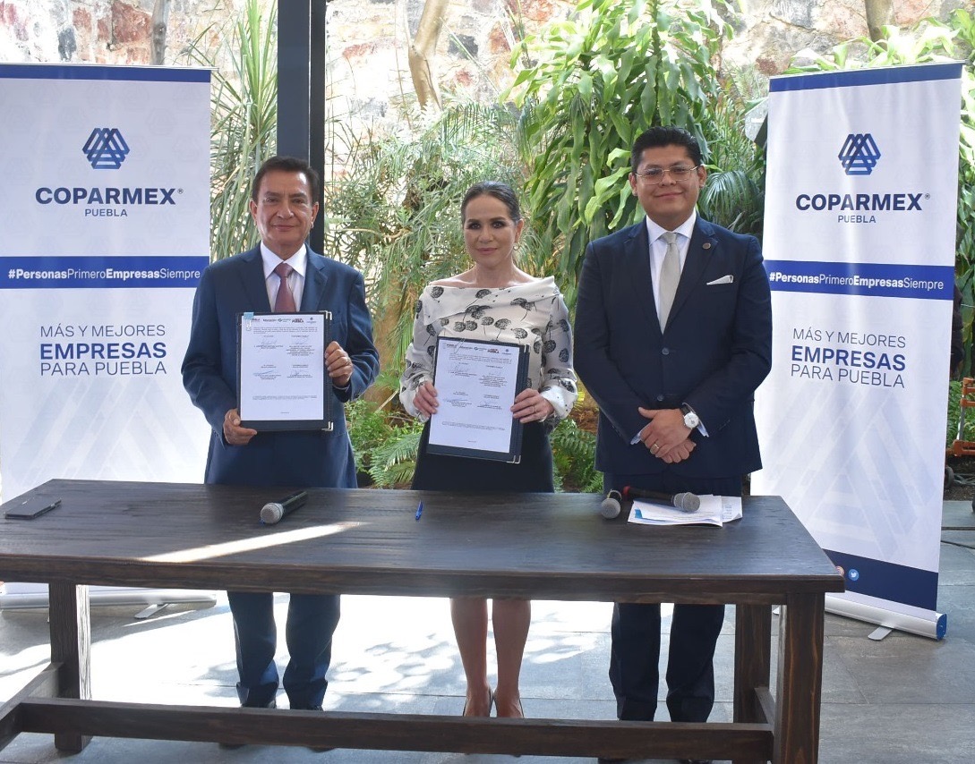 CIUDAD DE PUEBLA, Pue.- A fin de reforzar la vinculación para implementar un sistema de educación dual, servicio social, prácticas profesionales, talleres, donaciones, bolsa de trabajo y capacitación, el Colegio de Educación Profesional Técnica del Estado de Puebla (Conalep) y el Centro Empresarial de Puebla, sindicato adherido a la Confederación Patronal de la República Mexicana (COPARMEX Puebla), firmaron un convenio de colaboración.