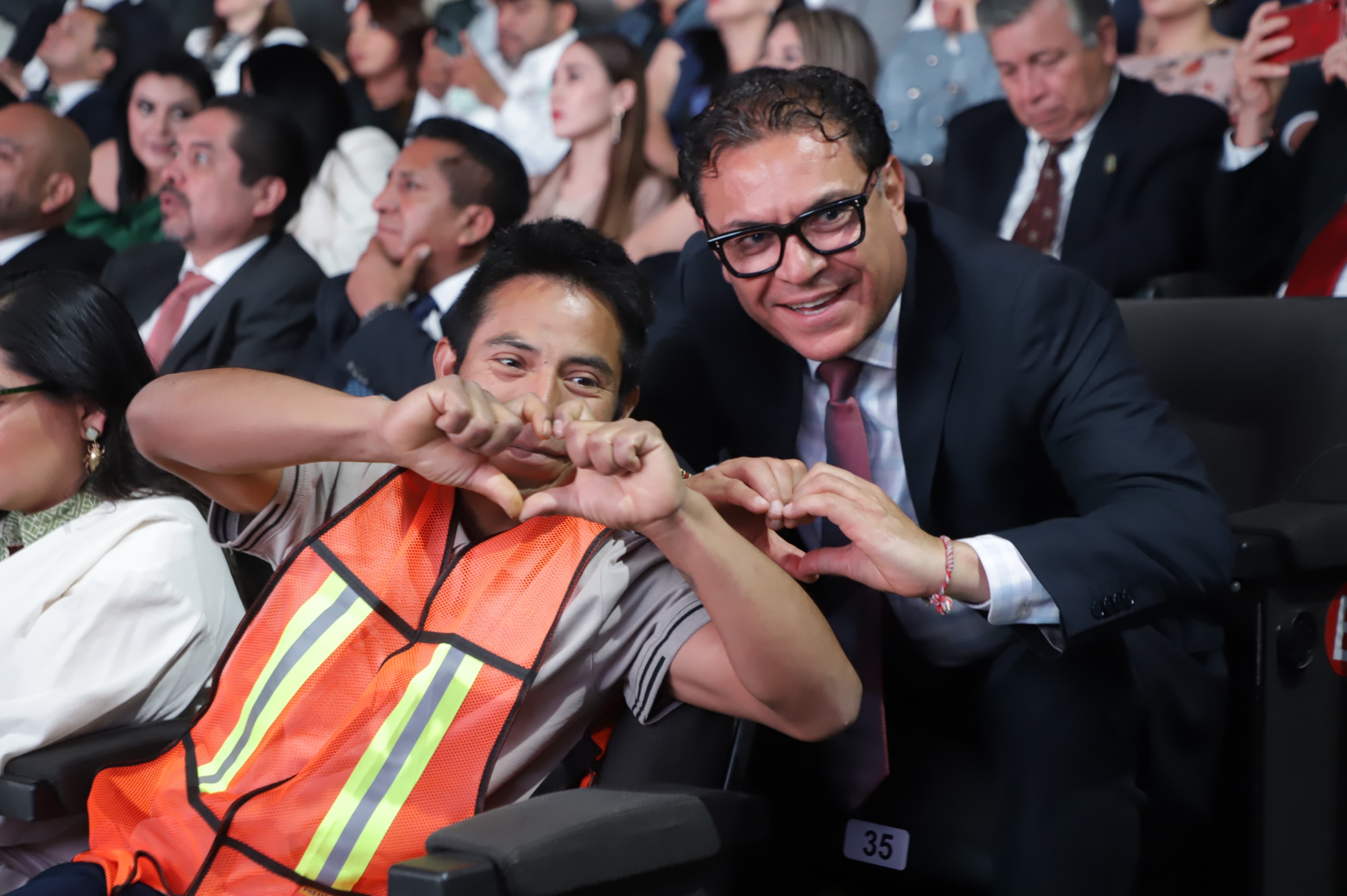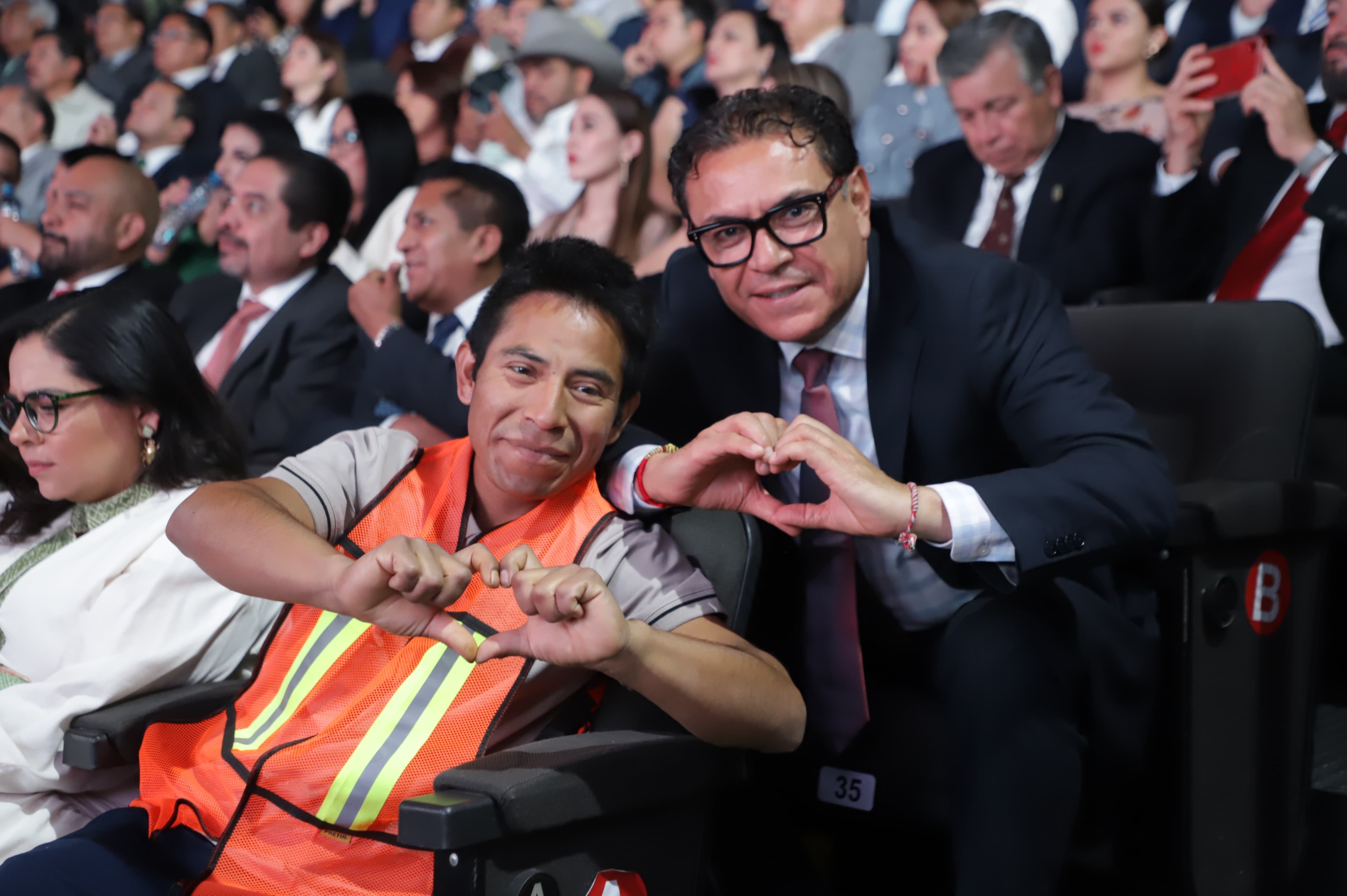 En el marco de los 100 primeros días del gobierno de Alejandro Armenta, el titular del ejecutivo señaló que bajo los ideales del humanismo mexicano y con los principios de seguridad, justicia y riqueza comunitaria, en la entidad se implementaron las Faenas Comunitarias, por ello resaltó la presencia del jóven en el Auditorio de la Reforma.