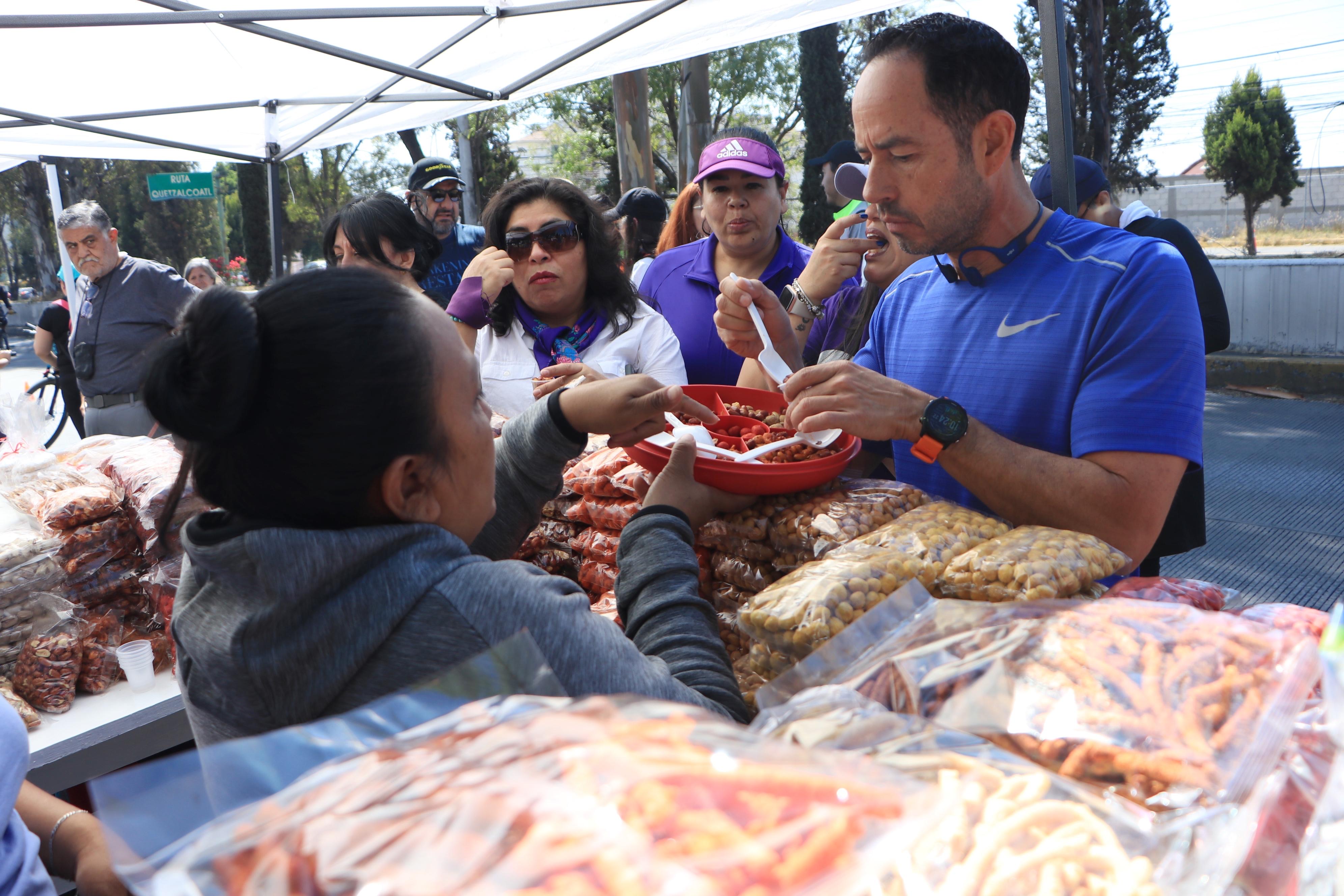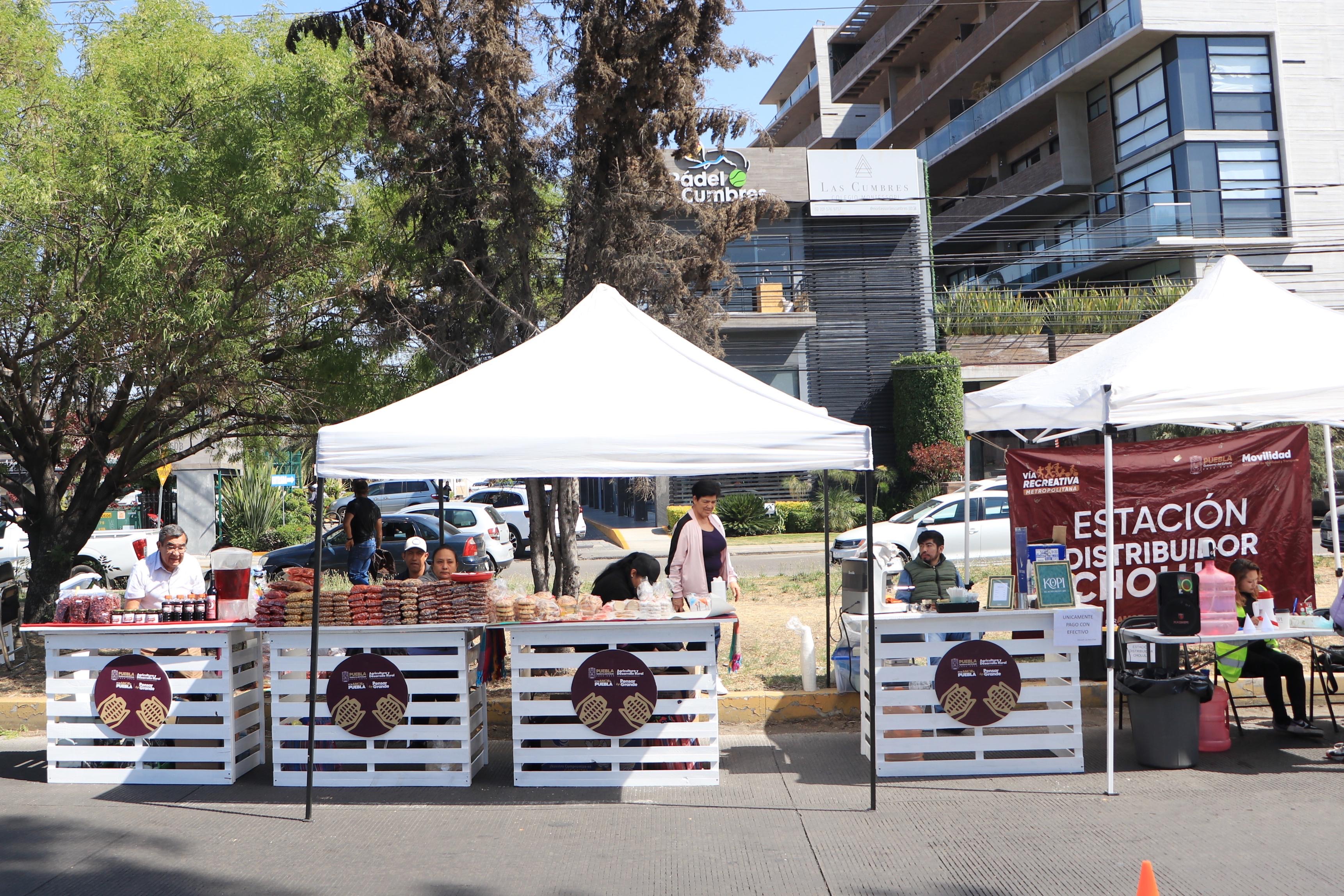 Durante la jornada, familias poblanas recorrieron la vía recreativa, para disfrutar de un ambiente de convivencia y consumir alimentos 100 por ciento poblanos y saludables, como café, botanas, pan artesanal y derivados de jamaica.