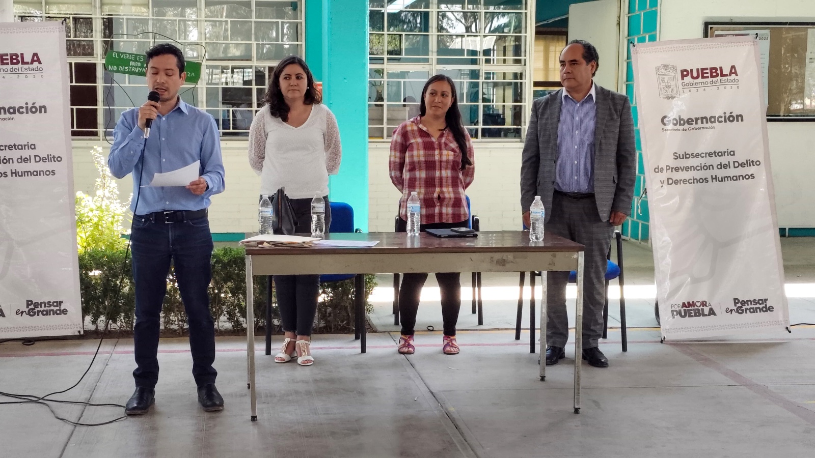Con el apoyo de personal del Consejo Estatal de Coordinación del Sistema Nacional de Seguridad Pública (CECSNSP), alumnas, alumnos, directivos y docentes de los planteles: 3, de la junta Auxiliar de San Gerónimo Caleras del municipio de Puebla; 4, ubicado en Tecali de Herrera; 10, de Huauchinango; 25, del municipio de Libres, y 28 de Atlixco trabajan en organizar acciones que atiendan temas de prevención del delito, género, y evitar el consumo de estupefacientes; entre otros.