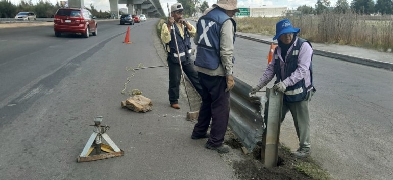 Con cuadrillas de trabajadores, la dependencia instaló barreras de contención con el objetivo de cerrar accesos clandestinos para vehículos y eliminar pasos no permitidos a peatones en ambas vías de comunicación, así como evitar invasión de carriles y descarga de escombro.