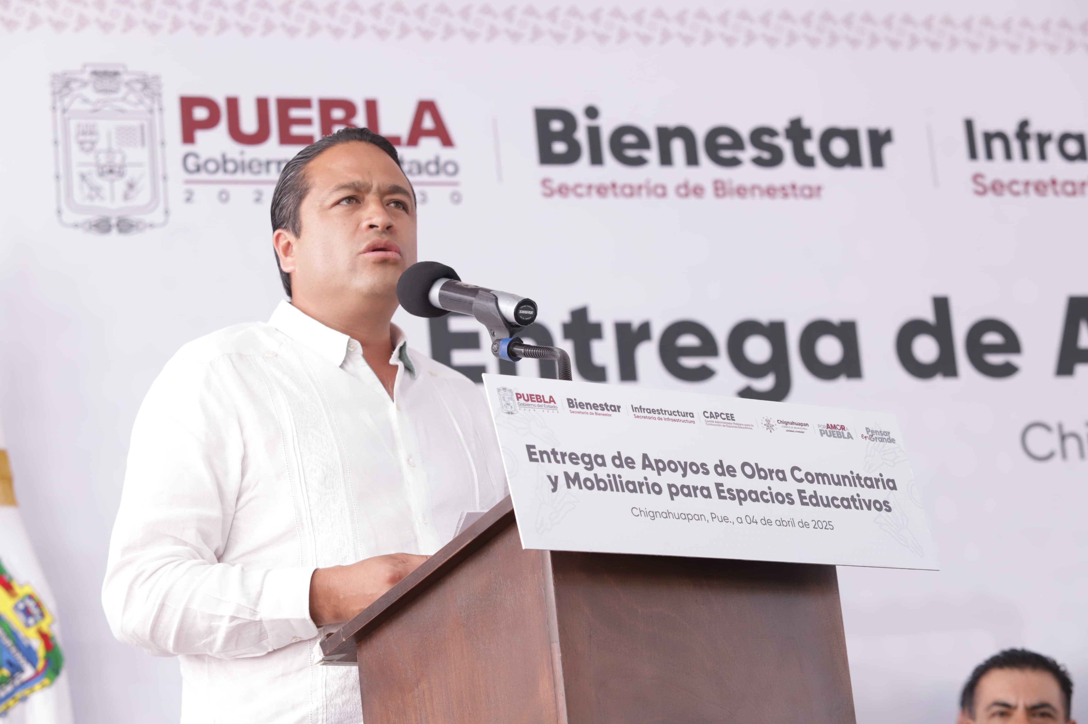 Señaló que se descentraliza el gobierno para hacer menos escritorio y más territorio. Afirmó que a 112 días de haber iniciado la administración, en Puebla se consolida el segundo piso de la Cuarta Transformación, con acciones como el Programa de Obra Comunitaria, a través del cual se han realizado mil asambleas comunitarias. Agregó que como gobernador no está pensando en cuánto deja la obra, sino en que exista progreso y desarrollo en los 217 municipios.
