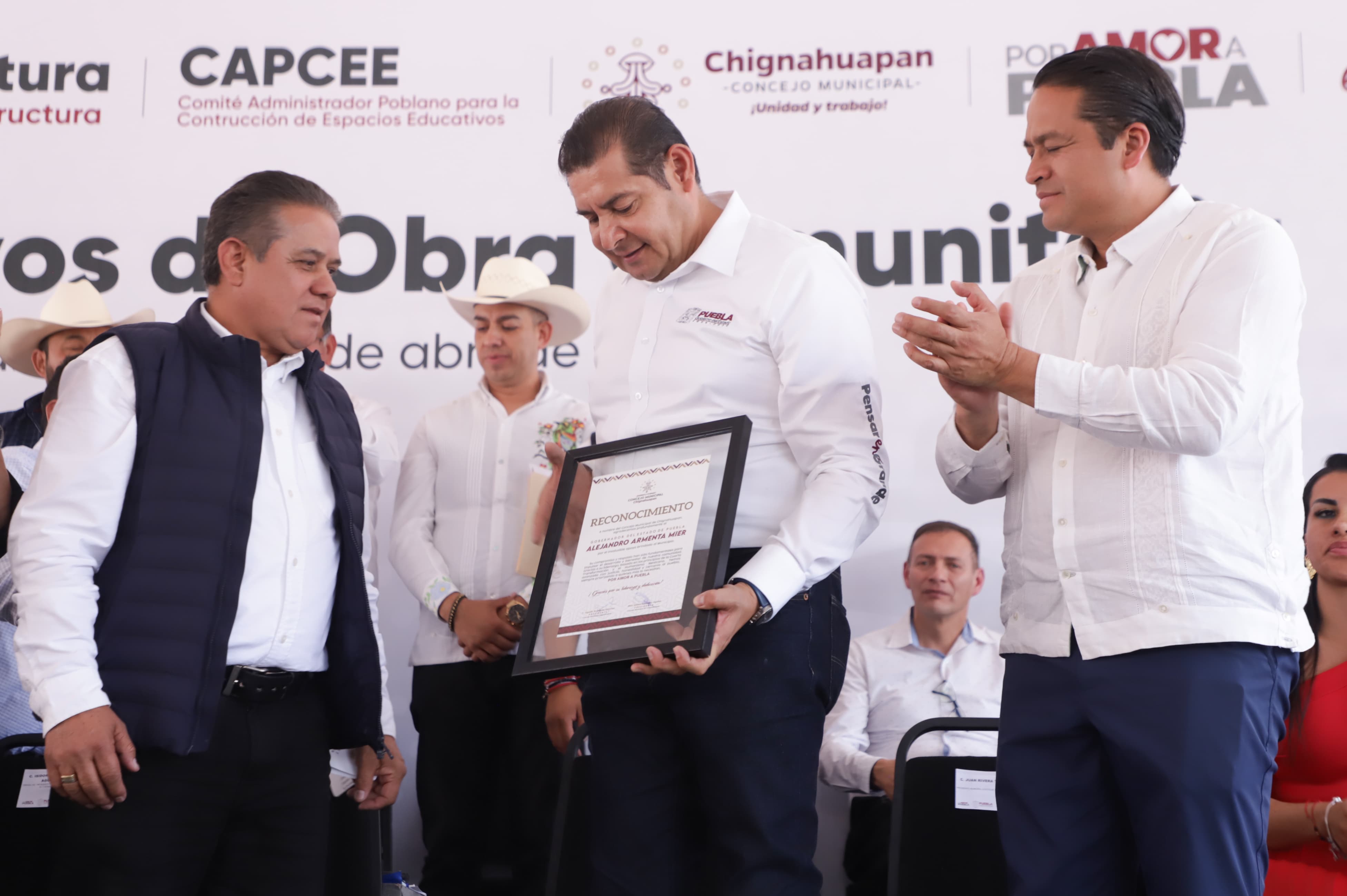 CHIGNAHUAPAN, Pue.- Con el fin de que el municipio recupere su lugar en la historia de Puebla y México, el gobernador Alejandro Armenta encabezó la entrega de 99 Certificados del Programa de Obra Comunitaria en el municipio. Además anunció una inversión de más 282 millones de pesos para comunicar a la Sierra Norte con la Nororiental, ya que las y los habitantes de Chignahuapan se merecen carreteras donde estén seguros y transiten con tranquilidad.