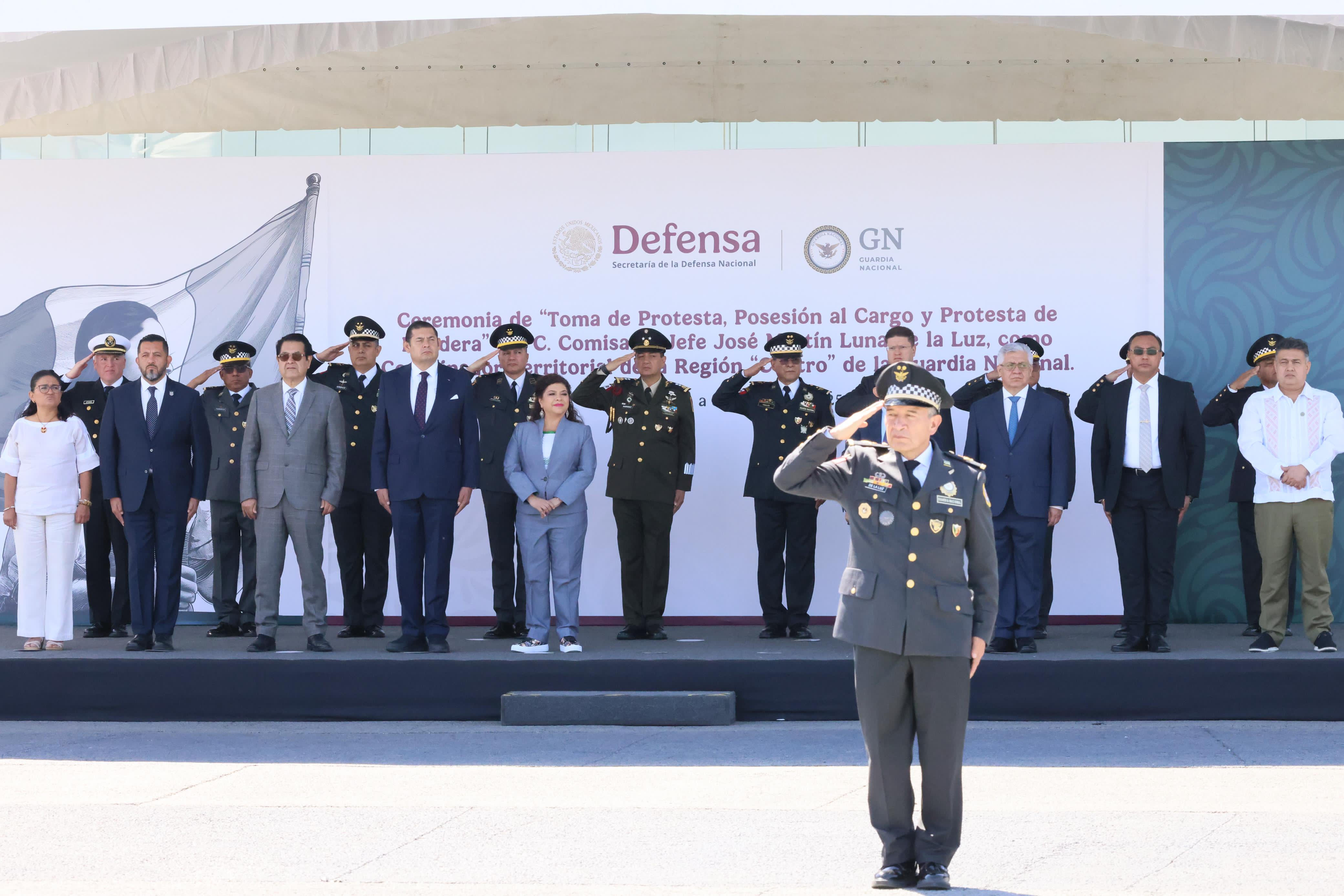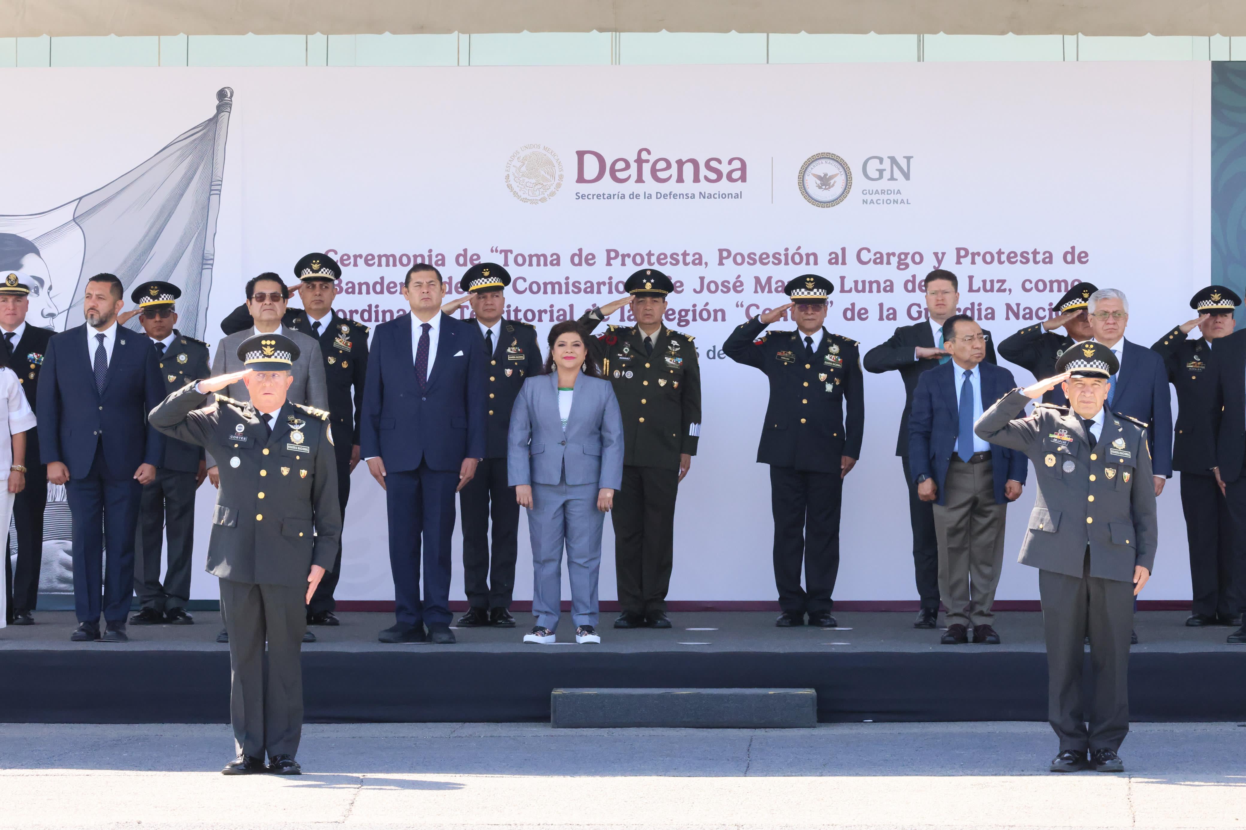 CIUDAD DE MÉXICO.- El gobernador de Puebla, Alejandro Armenta asistió a la Ceremonia de Toma de Protesta del coordinador territorial de la Guardia Nacional Región Centro, el General de Brigada del Estado Mayor, José Martín Luna de la Luz.