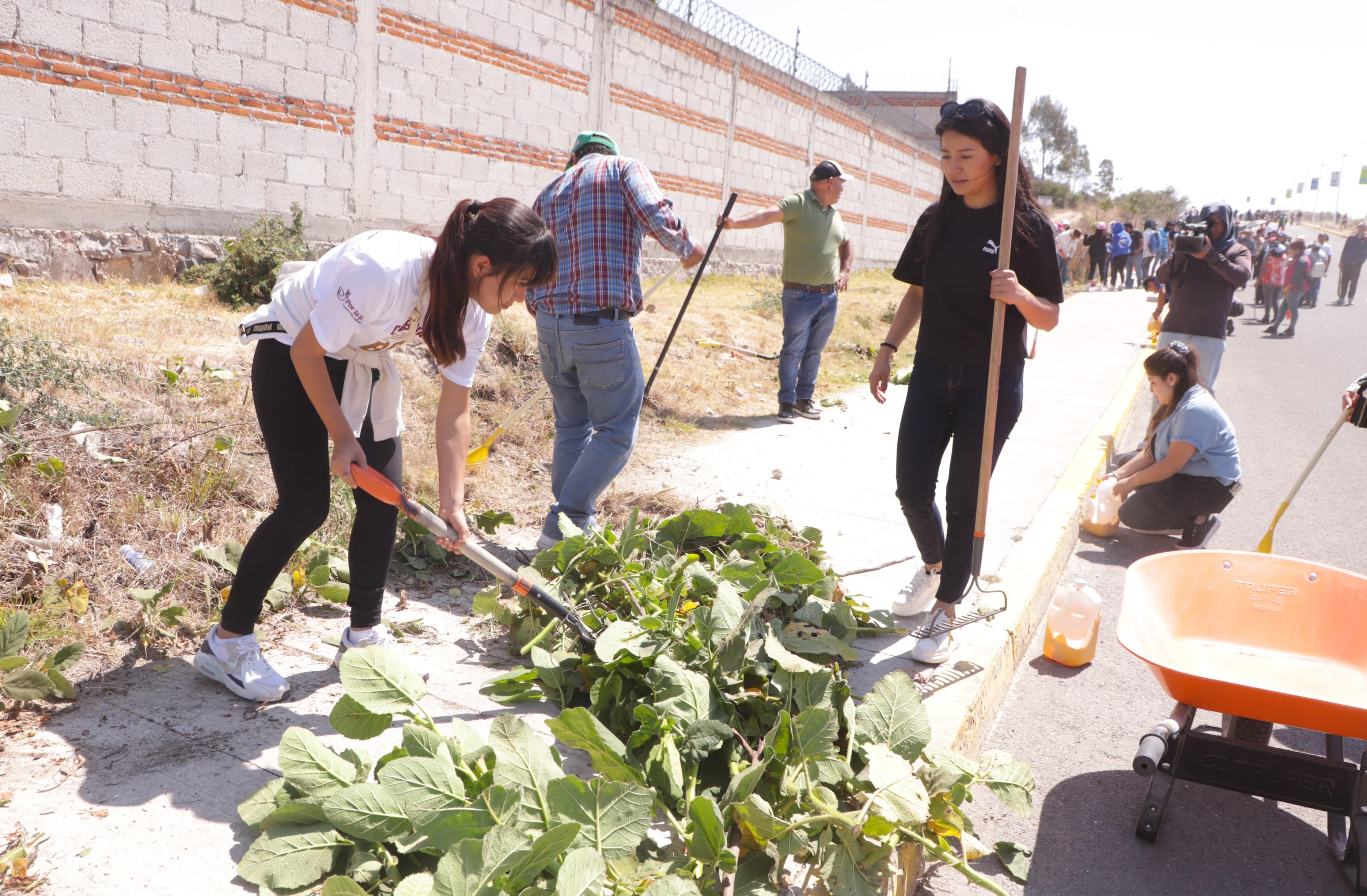 En su mensaje, la rectora de la Benemérita Universidad Autónoma de Puebla (BUAP), Lilia Cedillo, también participó en la actividad y subrayó que la faena comunitaria es una excelente oportunidad para reforzar el vínculo entre la universidad y la sociedad. “Esta labor favorece al medioambiente y embellece el espacio de los universitarios, pero también beneficia a la comunidad”, expresó, al destacar el impacto positivo de estas acciones en la vida universitaria y en la región de la junta auxiliar de San Pedro Zacachimalpa.