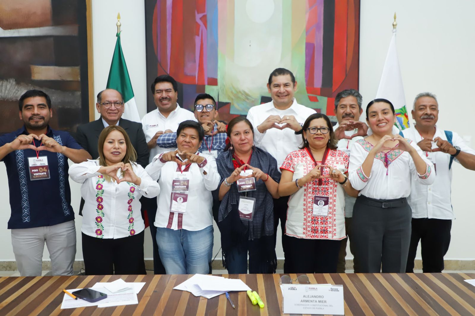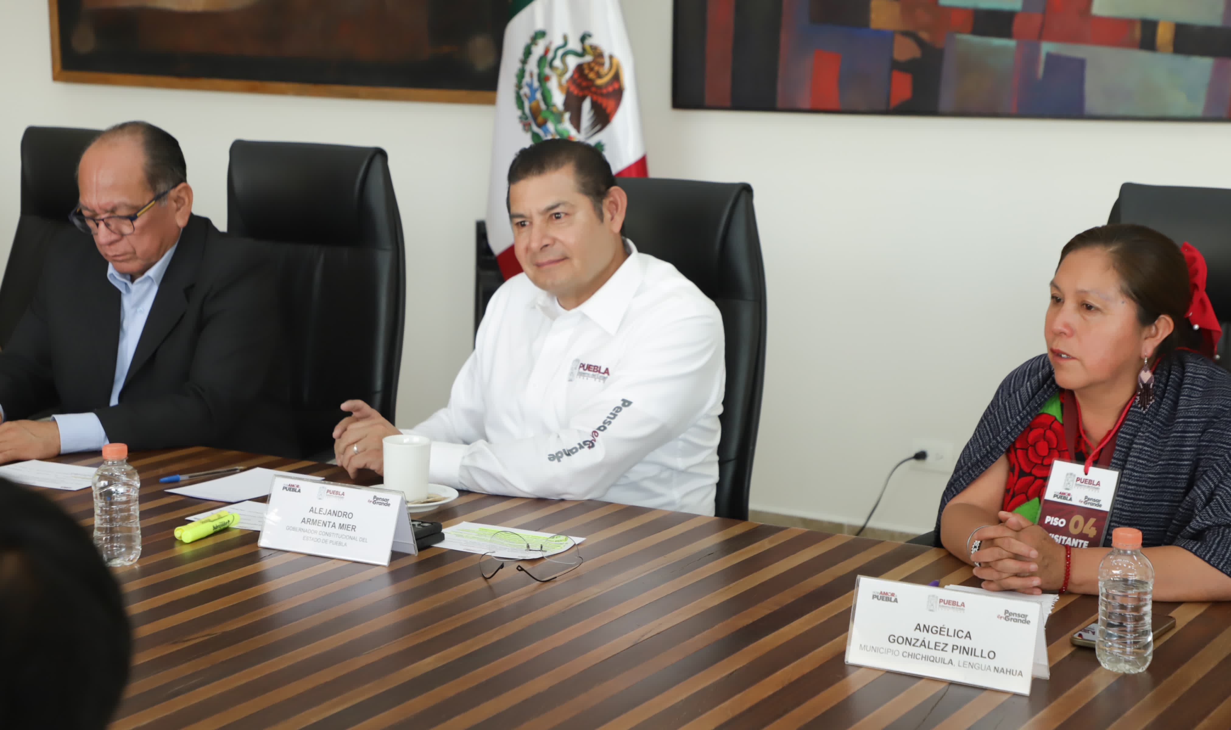 CIUDAD DE PUEBLA, Pue.- Con el objetivo de generar desarrollo, reconocer de manera plena los derechos de los Pueblos y Comunidades Indígenas en el Estado de Puebla, el gobernador Alejandro Armenta, sostuvo una mesa de trabajo con las y los consejeros nacionales de los Pueblos Indígenas.
