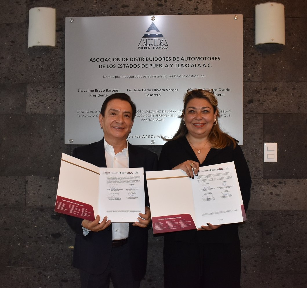 CIUDAD DE PUEBLA, Pue.- Con el objetivo de establecer una alianza estratégica para la realización de prácticas profesionales, capacitación, donaciones, bolsa de trabajo e implementación del Sistema de Educación Dual, el Colegio de Educación Profesional Técnica del Estado de Puebla (Conalep) y la Asociación de Distribuidores de Automotores de los Estados de Puebla y Tlaxcala A.C. (AMDA), firmaron un convenio de colaboración.
