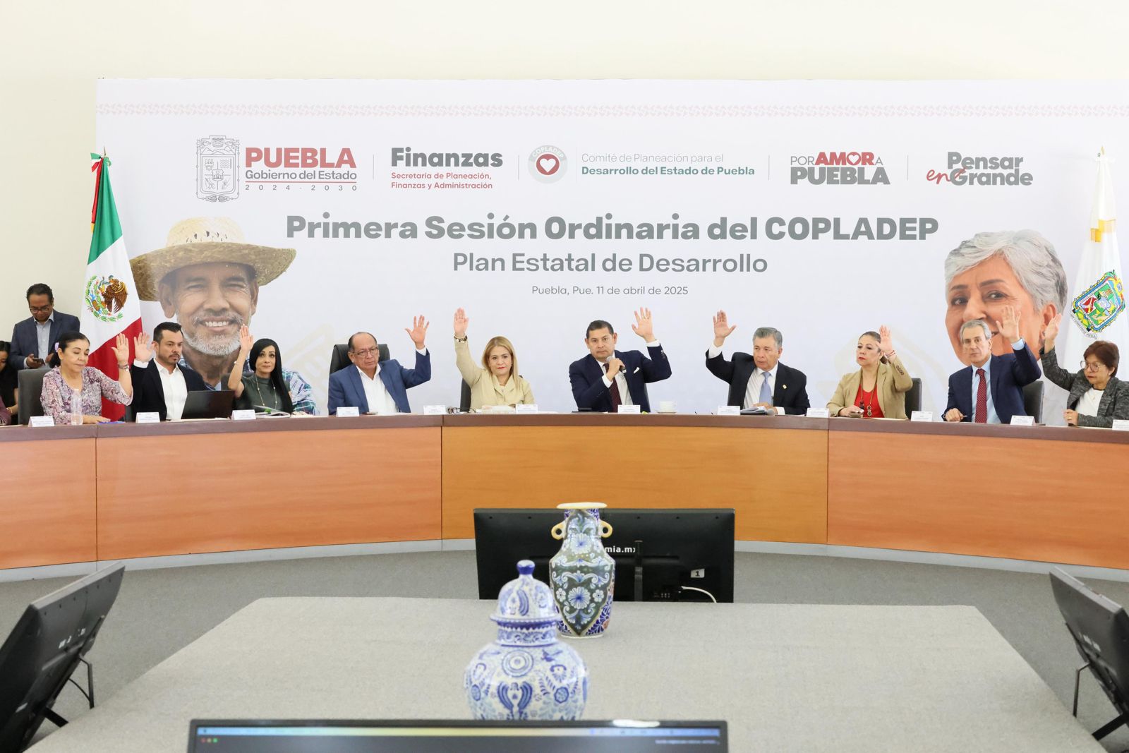 CIUDAD DE PUEBLA, Pue.- En un ejercicio democrático y participativo, el gobernador Alejandro Armenta y la secretaria Josefina Morales Guerrero, encabezaron la Primera Sesión Ordinaria 2025 de la Asamblea Plenaria del Comité de Planeación para el Desarrollo del Estado de Puebla (COPLADEP), donde se aprobó el Plan Estatal de Desarrollo, una hoja de ruta que marcará el rumbo del gobierno estatal en los próximos seis años.