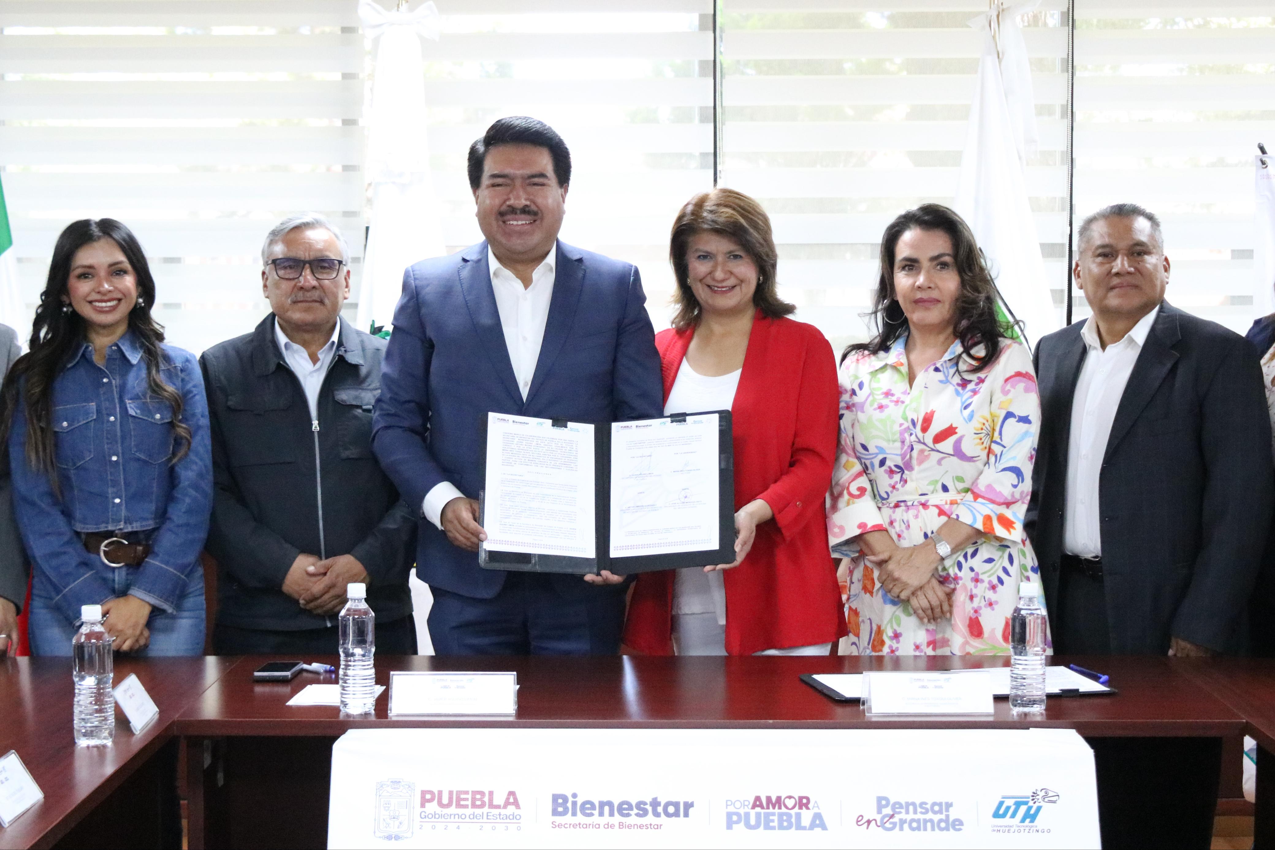 HUEJOTZINGO, Pue.- Por Amor a Puebla, el Gobierno del Estado, encabezado por Alejandro Armenta, refuerza las políticas públicas en materia social y educativa mediante la firma de un convenio de colaboración entre la Secretaría de Bienestar y la Universidad Tecnológica de Huejotzingo.