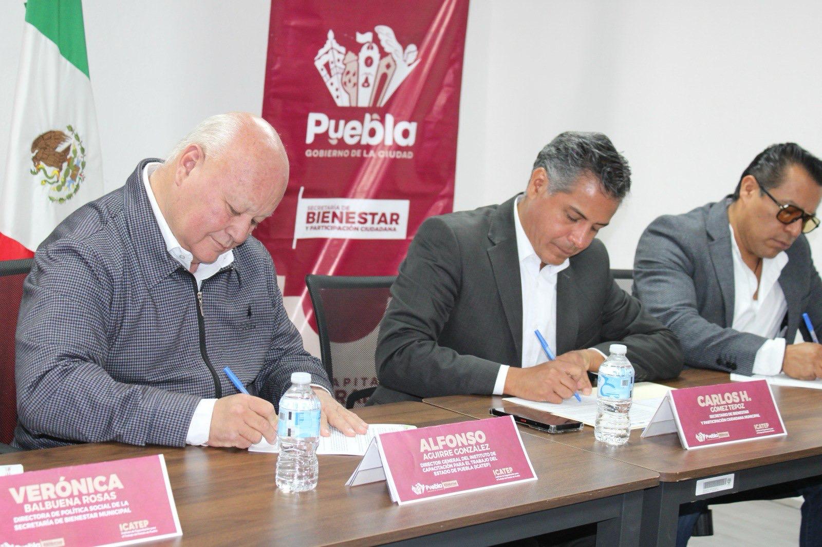 CIUDAD DE PUEBLA, Pue.– Derivado de la estrategia de la administración estatal que encabeza el gobernador Alejandro Armenta, el Instituto de Capacitación para el Trabajo del Estado de Puebla (ICATEP) firmó un convenio de colaboración con la Secretaría de Bienestar y Participación Ciudadana del Ayuntamiento. El acuerdo tiene como objetivo acercar oportunidades de formación y desarrollo a la población de la capital poblana.