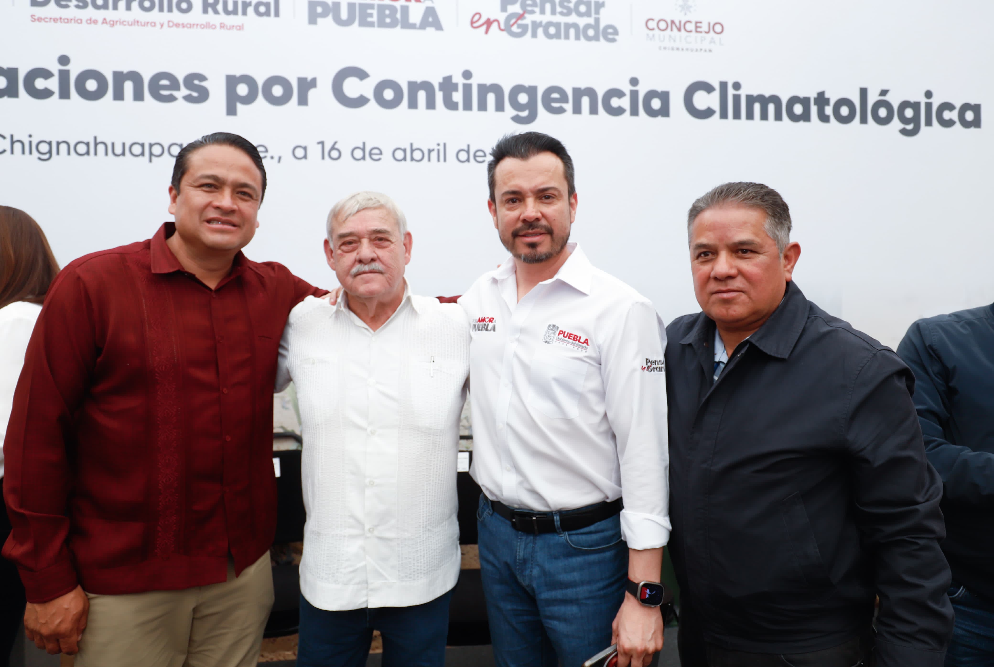 CHIGNAHUAPAN, Pue.- Con el propósito de atender de manera oportuna a las y los productores del campo afectados por fenómenos climatológicos como heladas o granizadas, en representación del Gobernador de Puebla, Alejandro Armenta, el coordinador de gabinete, José Luis García Parra, entregó 30 cheques para indemnizar daños en los cultivos por el frente frio No. 37, a través del Fondo para la Prevención y Atención de Contingencias Agropecuarias.